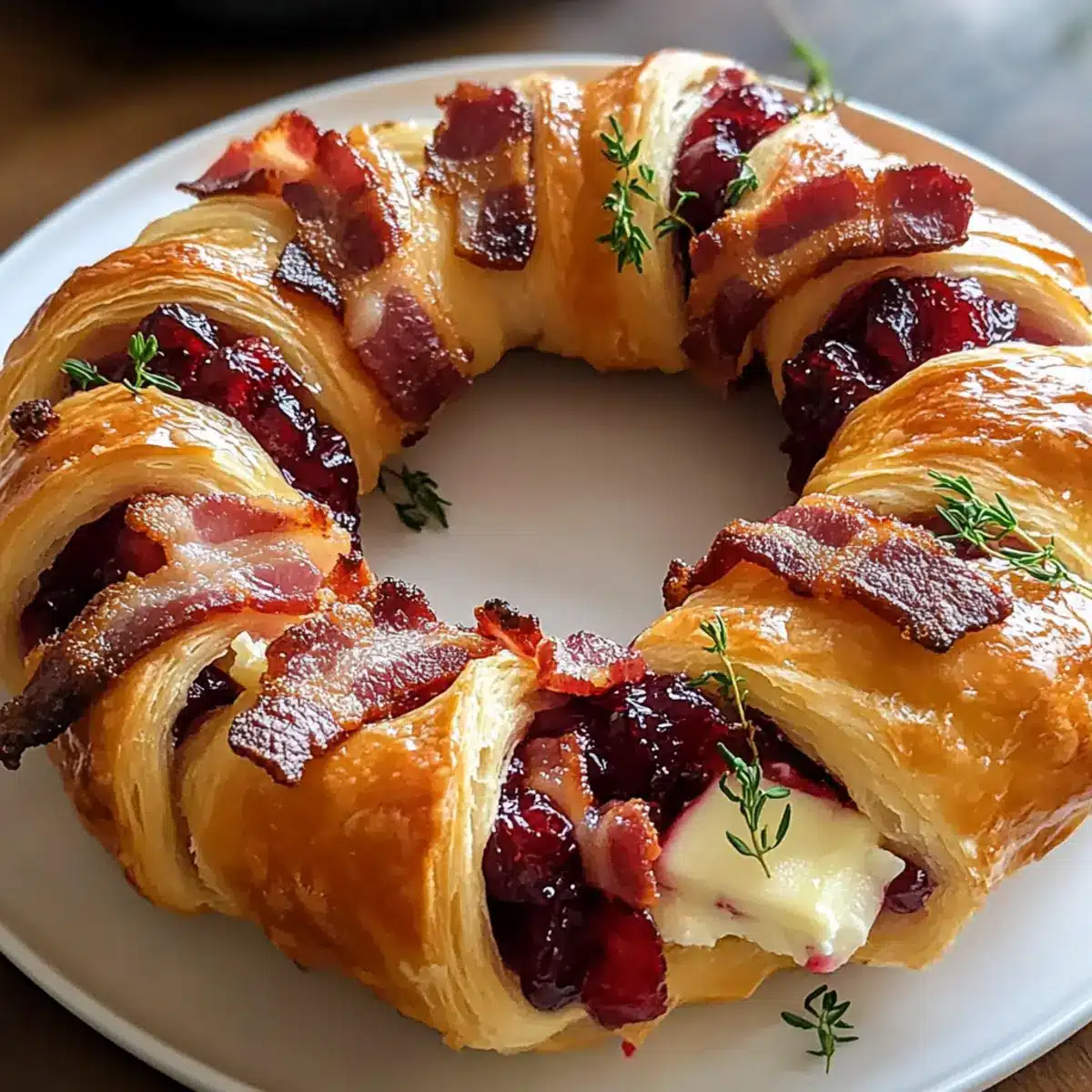 Mit diesen Zutaten zauberst du mühelos einen köstlichen Bacon Brie Croissant Kranz, der das Highlight deiner Festtafel sein wird!