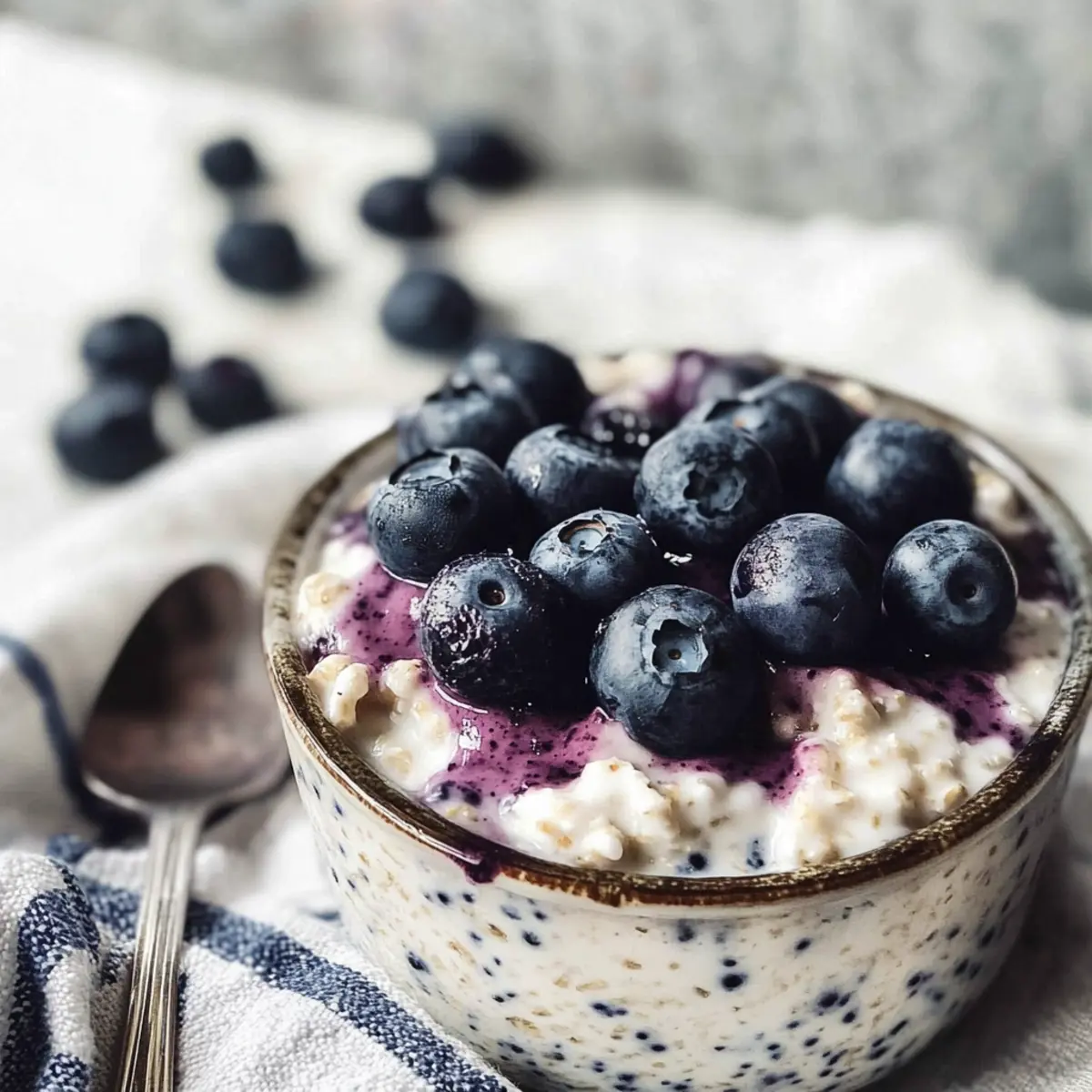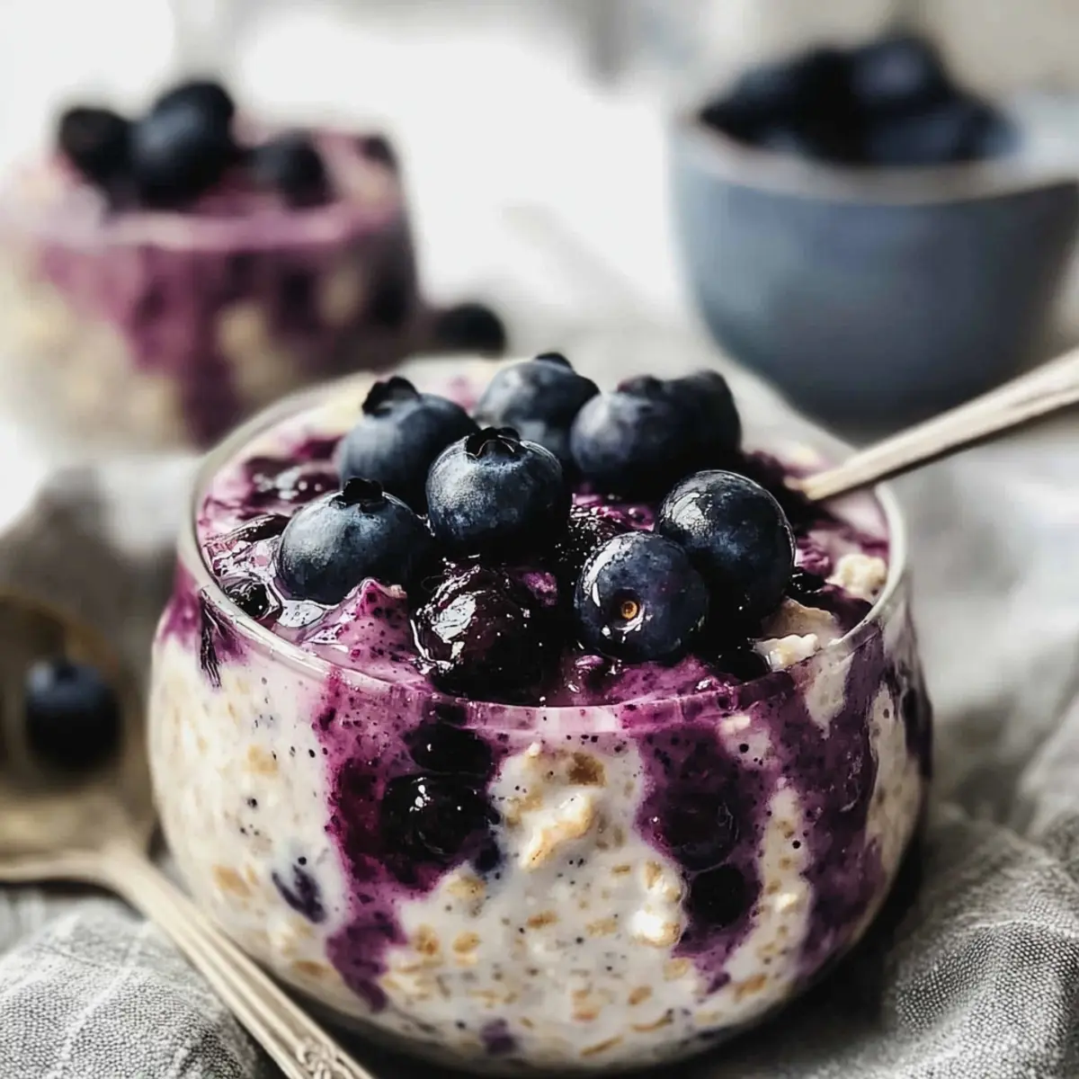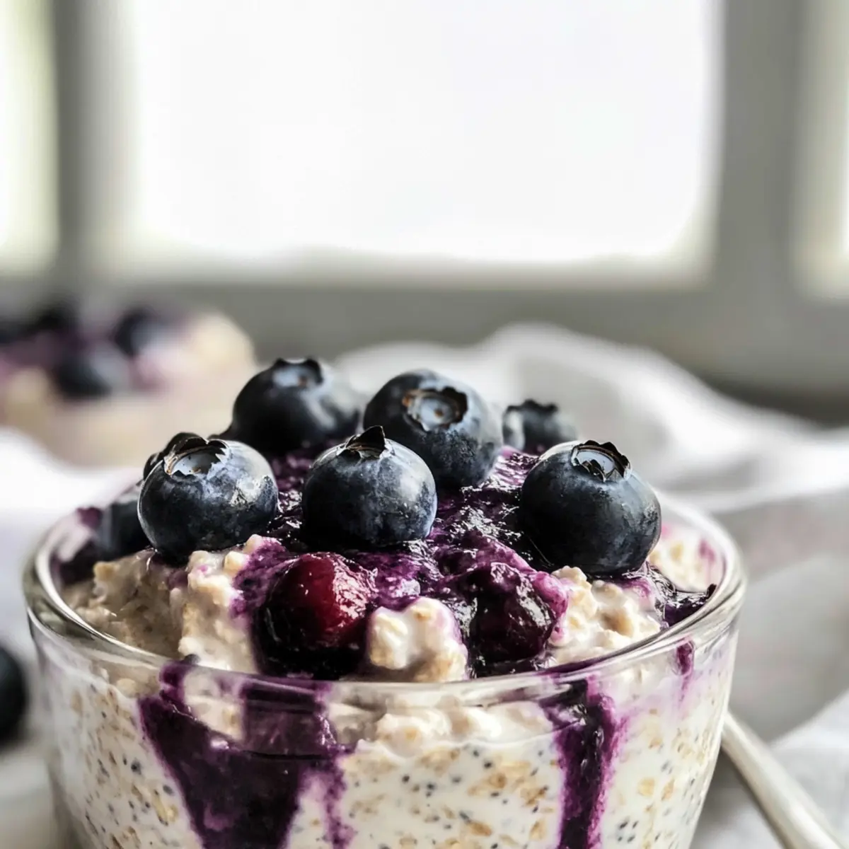 Cremiger Genuss: Diese Blaubeer Käsekuchen Übernacht Haferflocken sind so cremig und lecker, dass sie sich fast wie ein Dessert anfühlen!