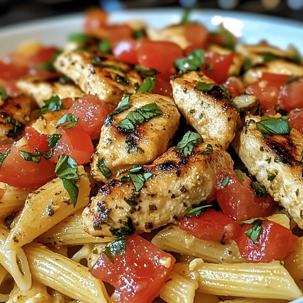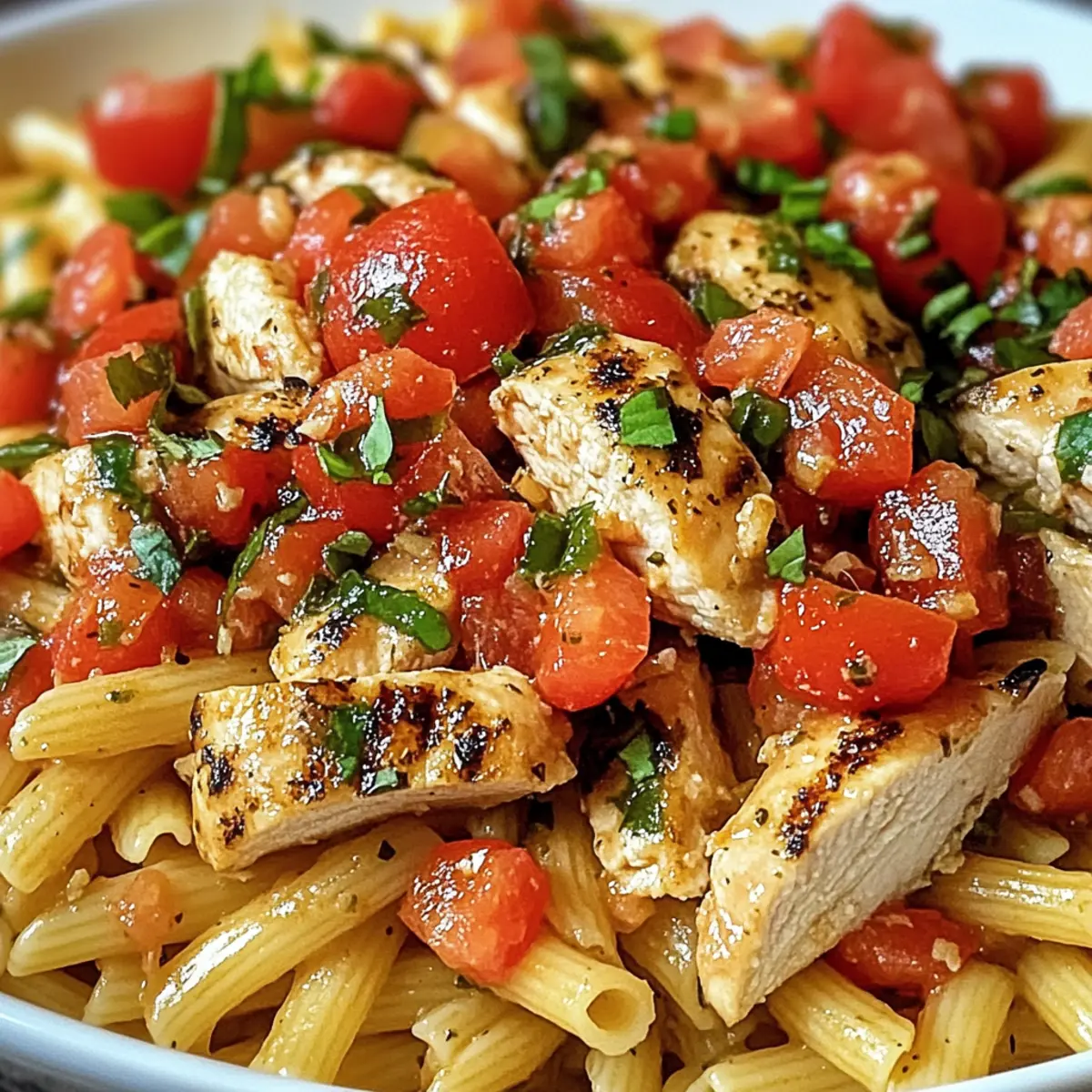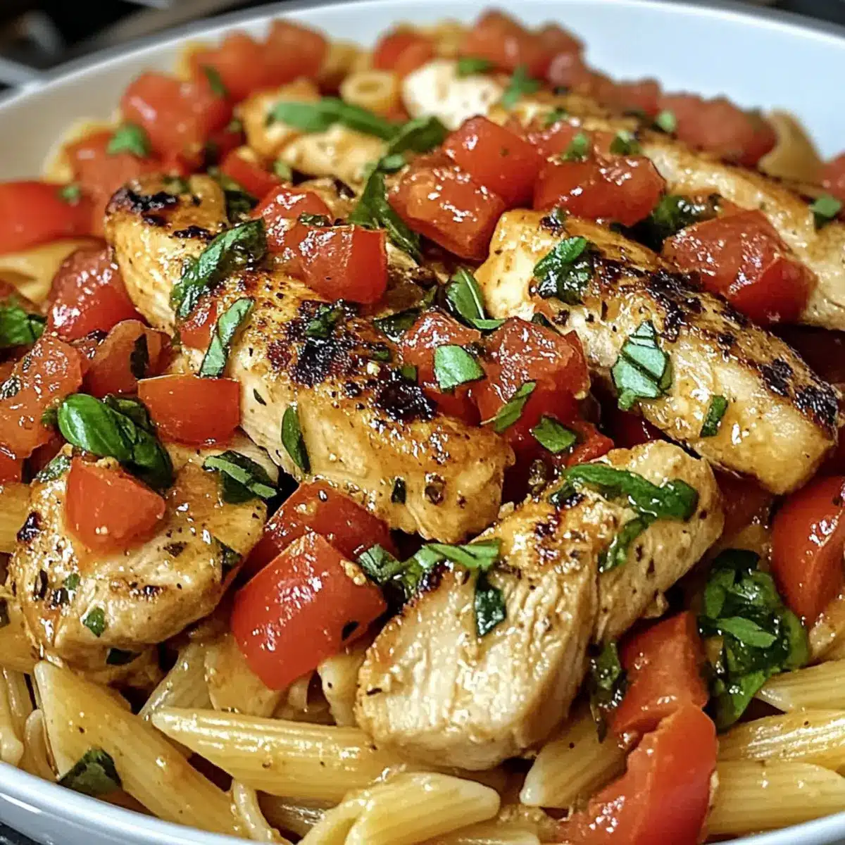 Bruschetta Hühnchen Pasta für ein schnelles Abendessen