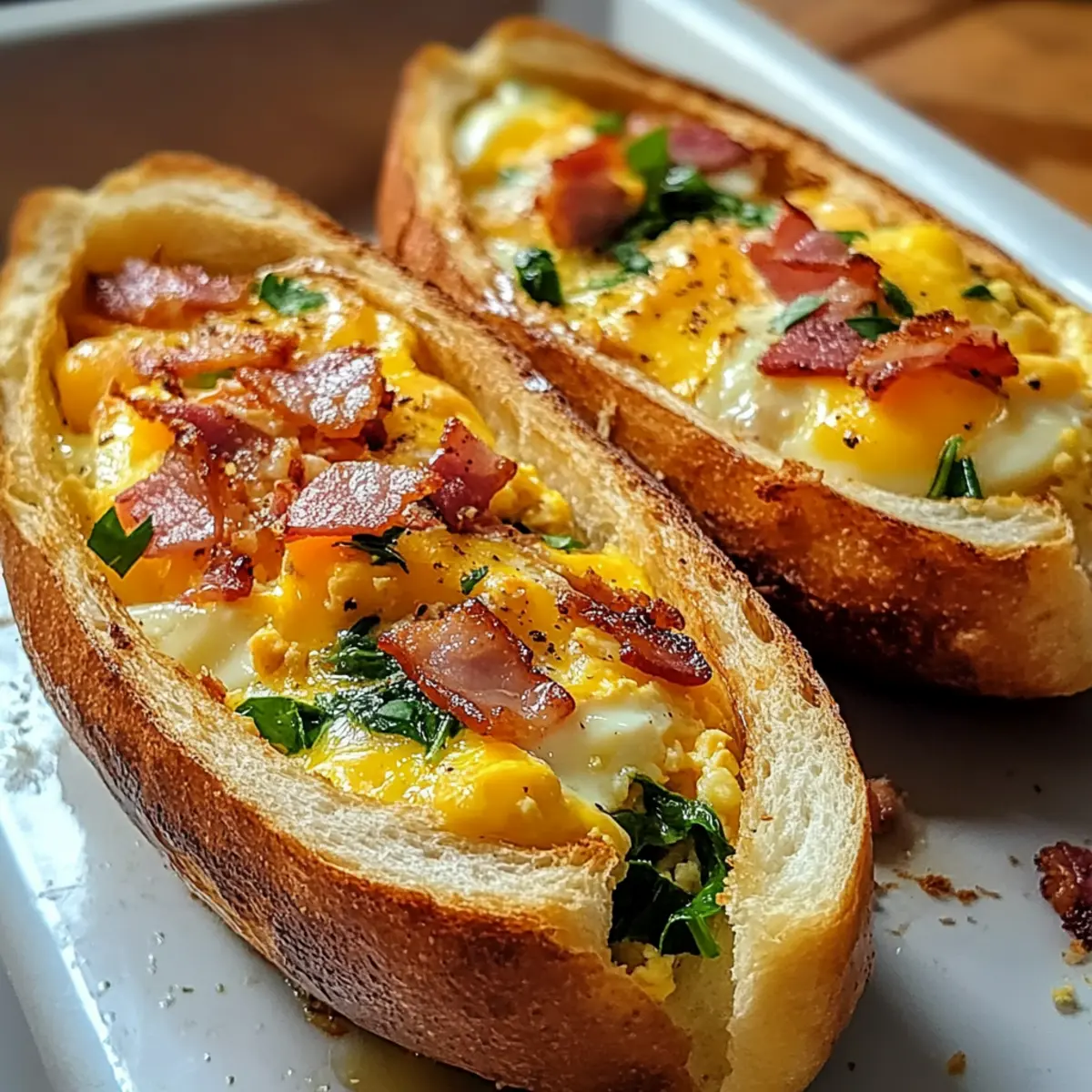 Gebackene Eierboote mit Putenbacon und Gemüse