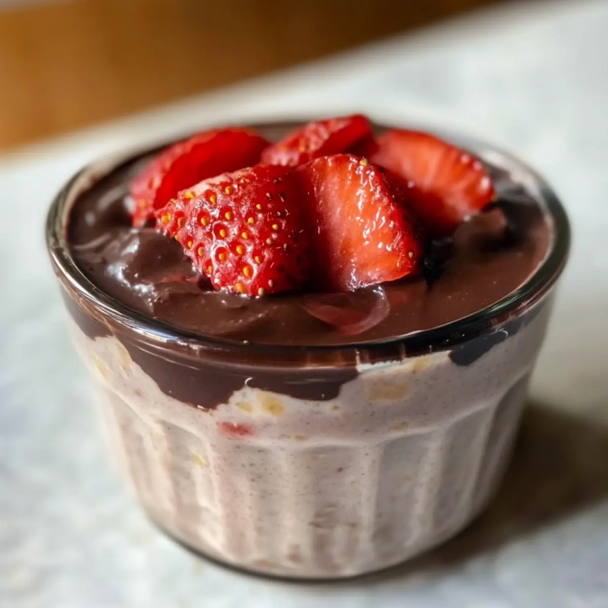 Vermischte Erdbeerhafer mit Schokoladenschale
