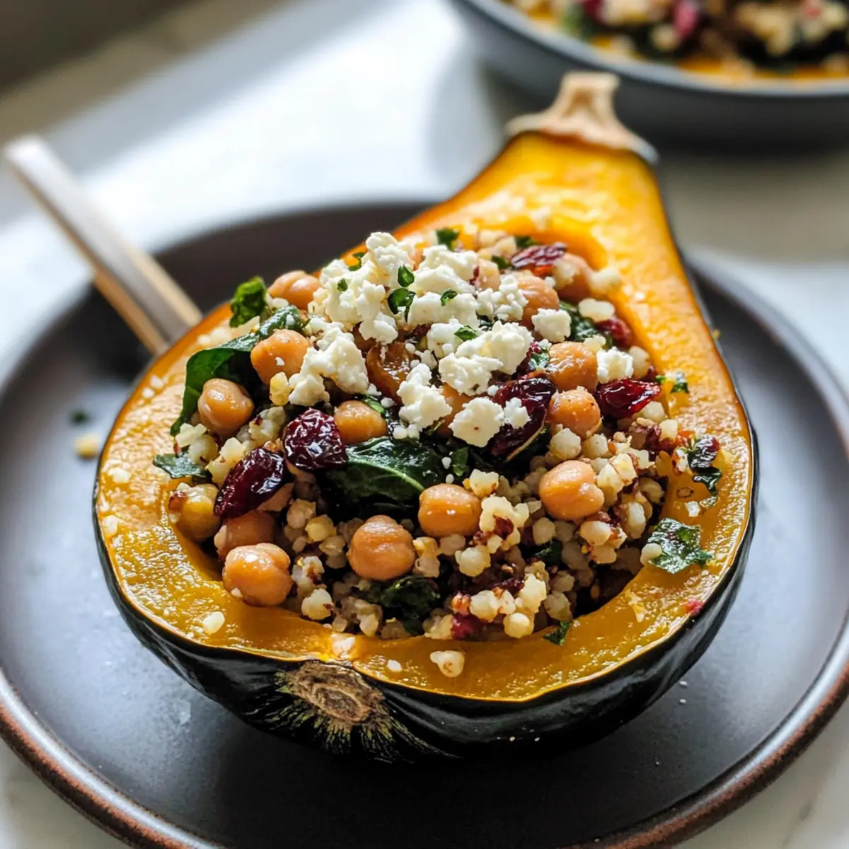 Kichererbsen- und Feta gefüllter Eichelkürbis lecker