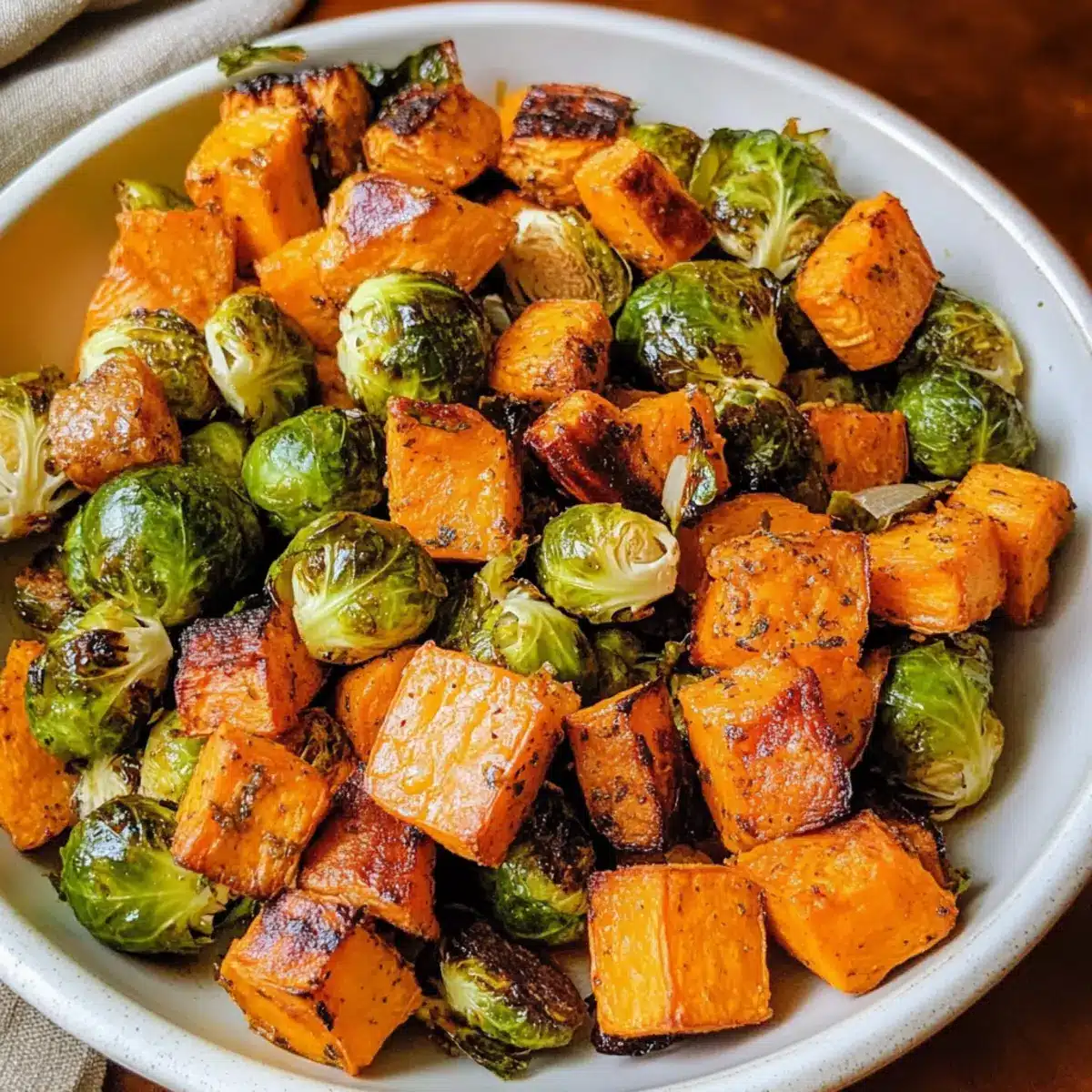Geröstete Rosenkohl und Süßkartoffeln schnell zubereiten