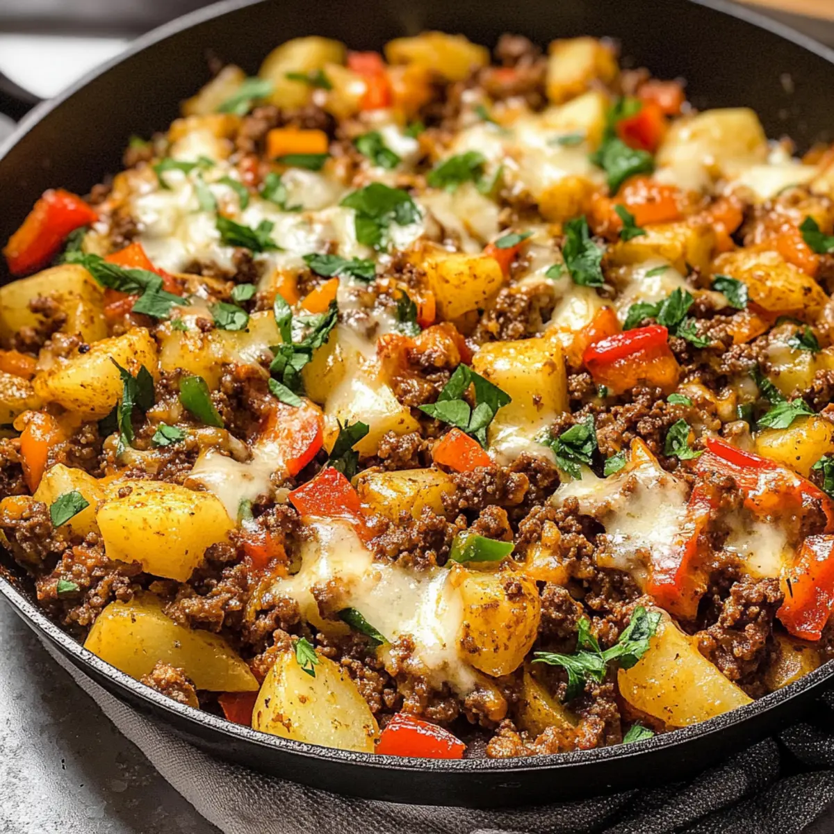 Rinderhackfleisch und Kartoffelpfanne für die Familie