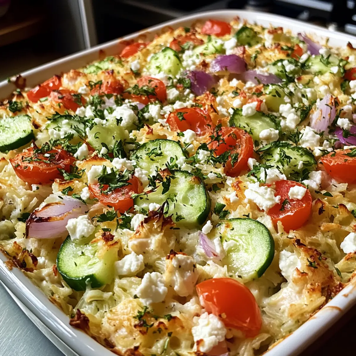 Dump-und-Backe Hähnchen Tzatziki Auflauf für Genüsse