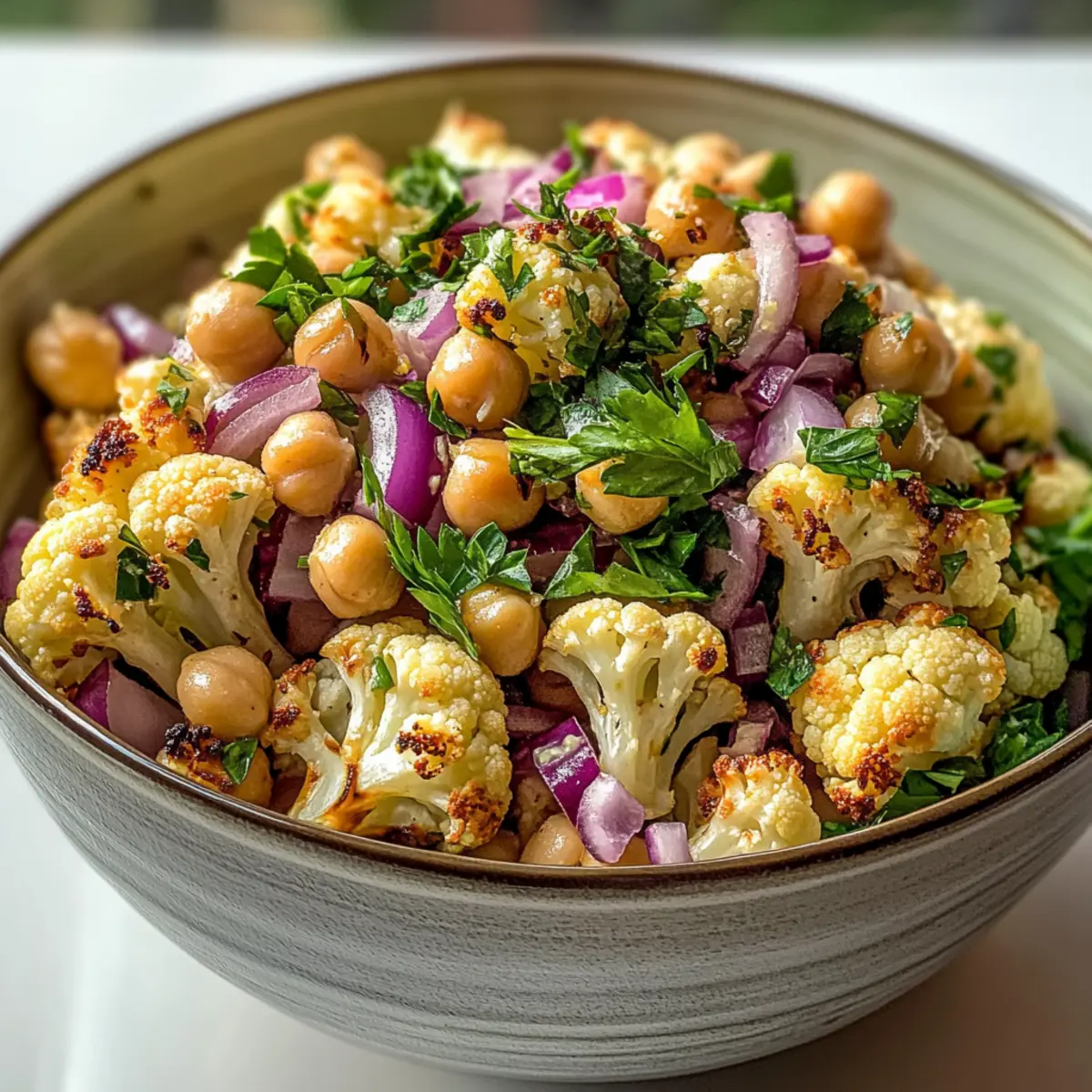 Kichererbsen- und Blumenkohlsalat mit Zitronen-Dressing