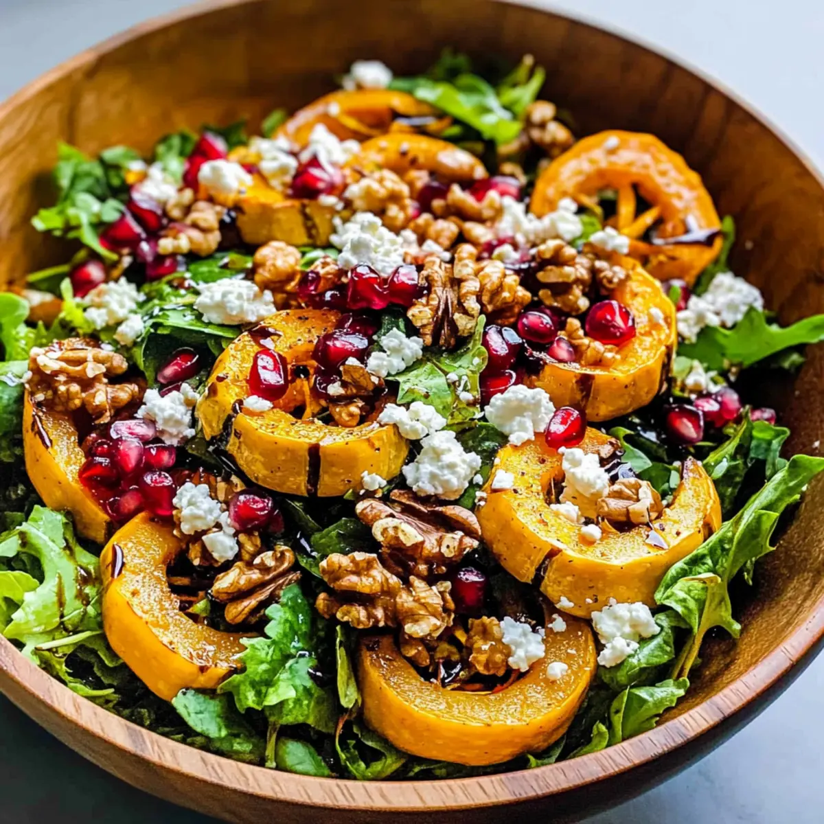Gerösteter Delicata Kürbis Salat mit Balsamico-Dressing
