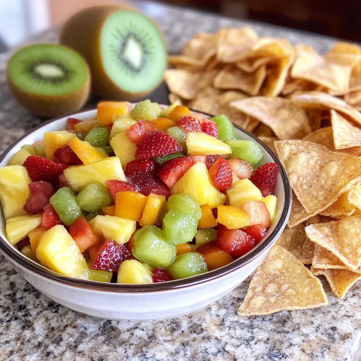 Fruchtsalsa mit Zimt-Zucker-Tortilla-Chips genießen