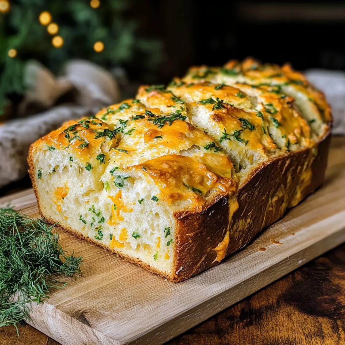 Würziger Genuss: Der kräftige Cheddar und die frischen Kräuter verleihen diesem Brot einen unvergesslichen Geschmack, der Erinnerungen an das Zusammensein am Kamin weckt.