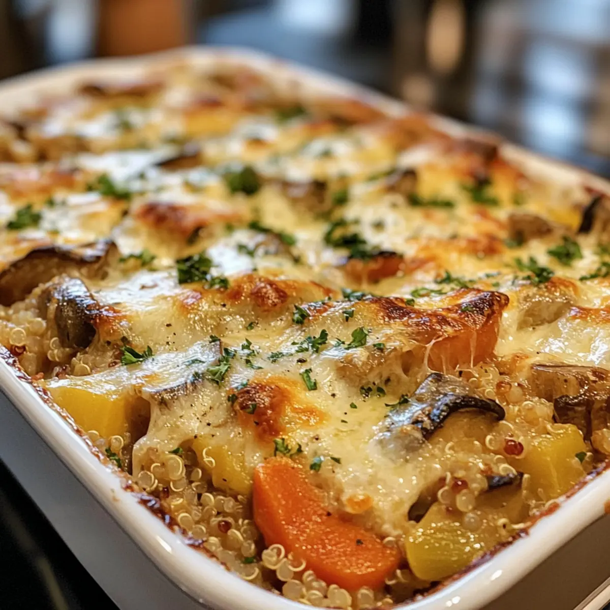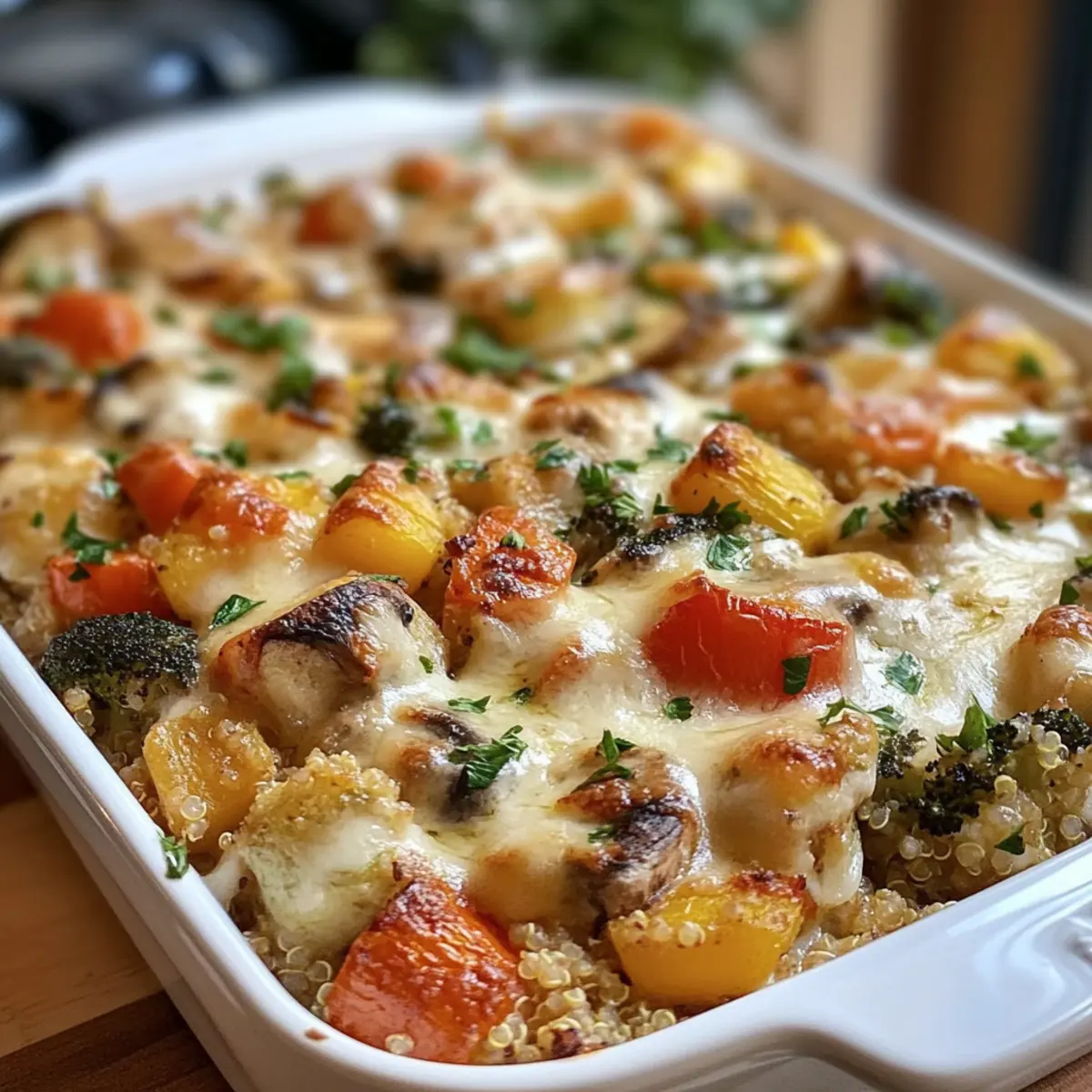 - Saisonale Gemüsekombination: Experimentiere mit frischen Gemüsesorten wie Brokkoli oder Paprika. Ihre leuchtenden Farben und Aromen machen den Auflauf besonders ansprechend.