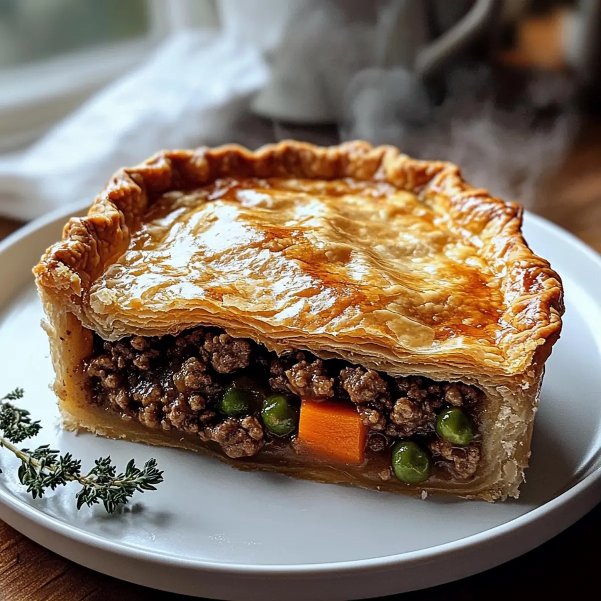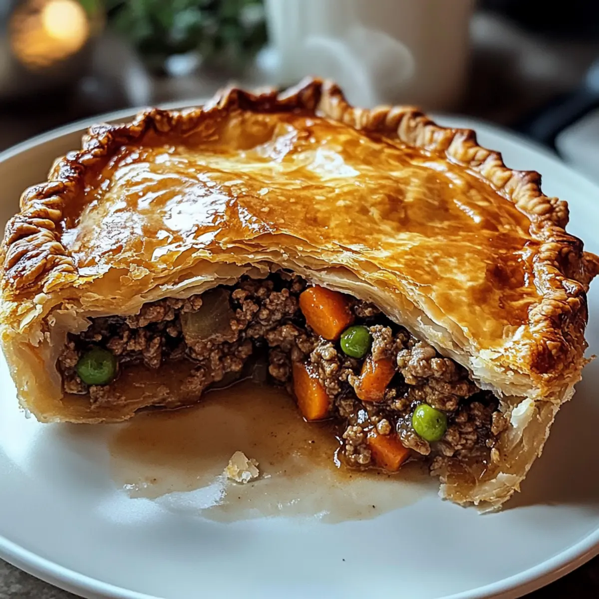 Hausgemachte Gravy: Eine reichhaltige, aromatische Soße, die über die Fleischpastete gegossen wird, fügt Feuchtigkeit und Geschmack hinzu und macht jedes Stück noch appetitlicher.