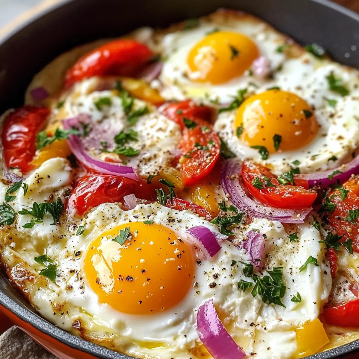 Reichhaltiger, herzhaftes Geschmackserlebnis: Die Kombination von Feta, frischem Gemüse und Eiern sorgt für ein unvergessliches Geschmackserlebnis.