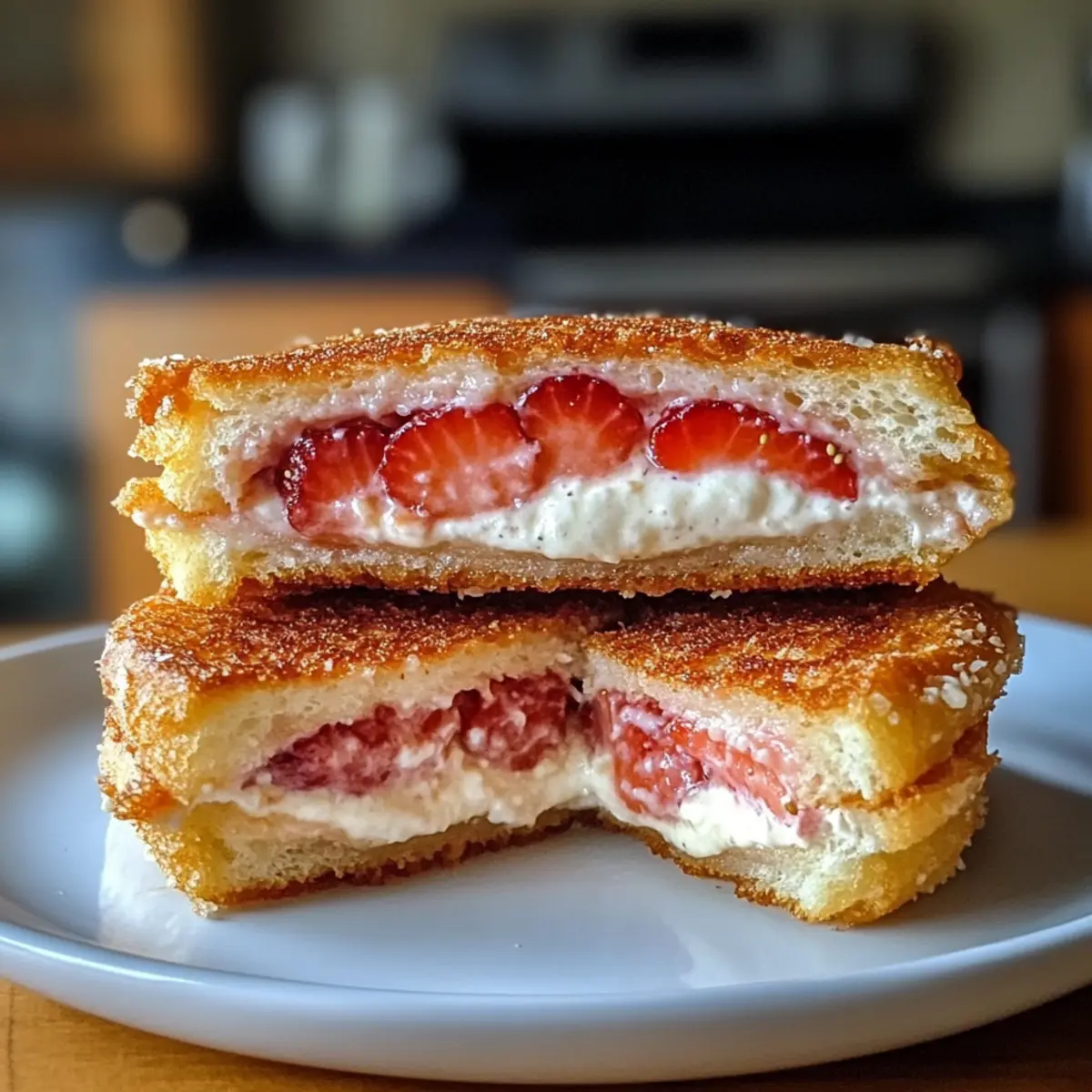 Gebratene Erdbeer-Käsekuchen-Sandwiches zum Verlieben