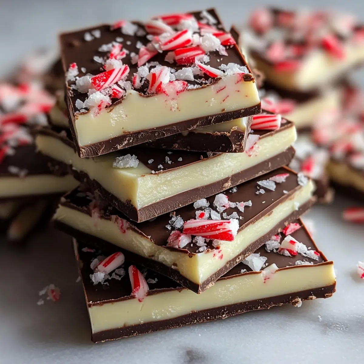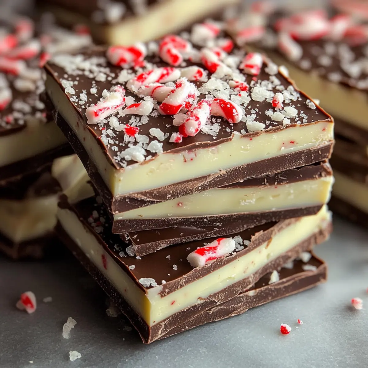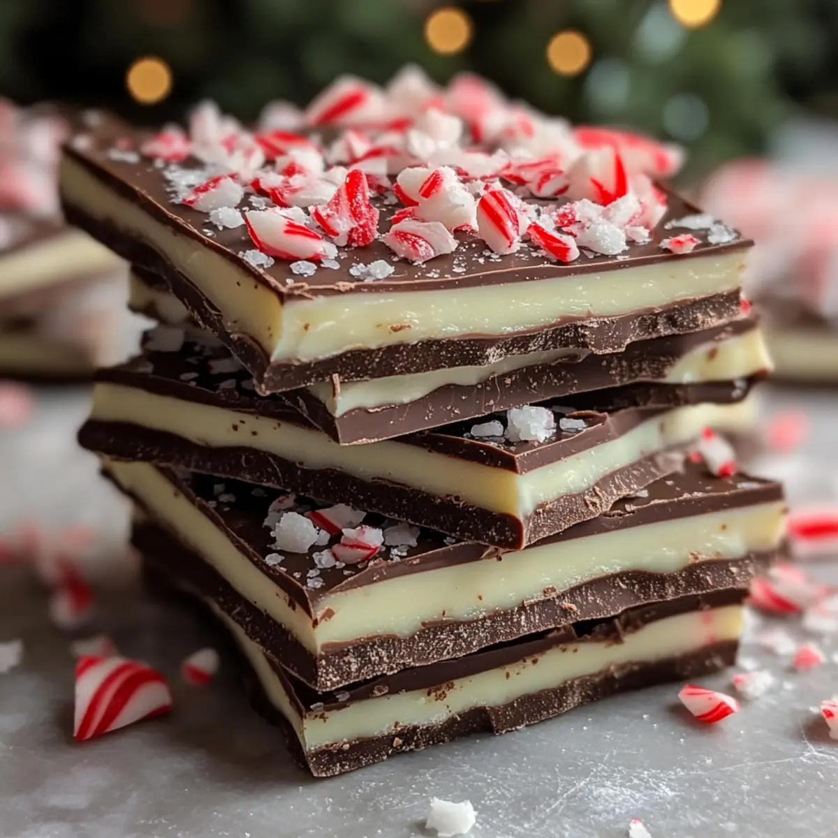 - Zerkleinerte Pfefferminzbonbons – Sie sorgen für den festlichen Crunch und den mintigen Geschmack obenauf; du kannst sie auch durch zerbrochene Brezeln für eine salzige Note ersetzen.