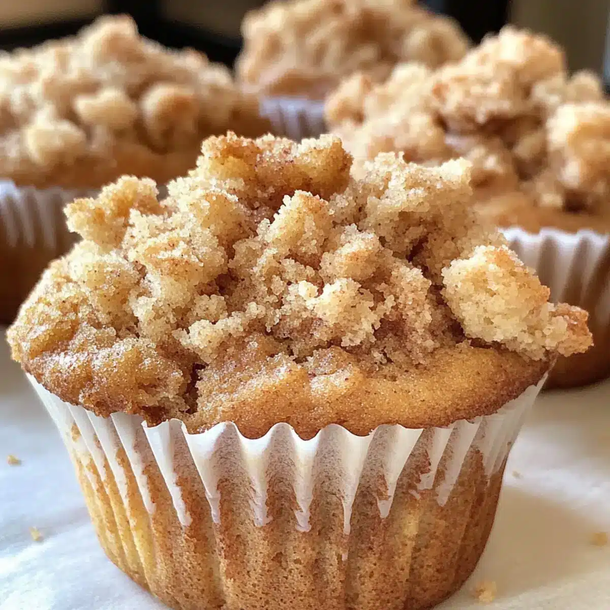- Krümel-Topping hinzufügen: Krümel-Topping auf jedem Muffin verteilen und leicht andrücken.