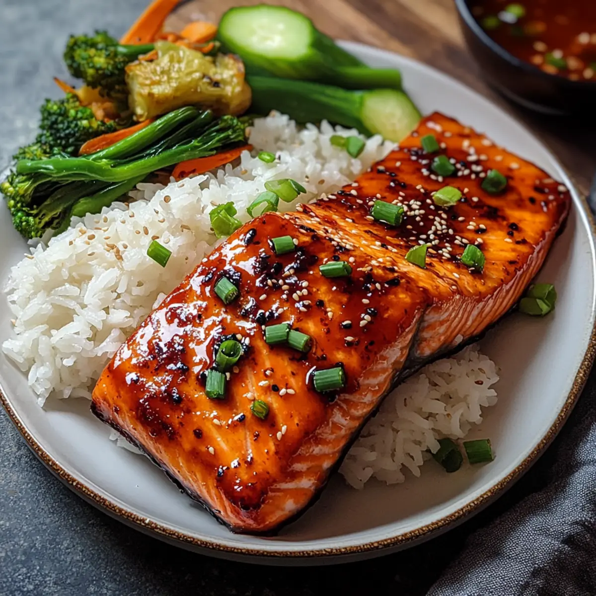 Serviere den Lachs über warmen Soba-Nudeln mit Frühlingszwiebeln für eine köstliche, asiatisch inspirierte Variante. Diese Kombination bietet eine wunderbare Textur und Geschmackstiefe. -