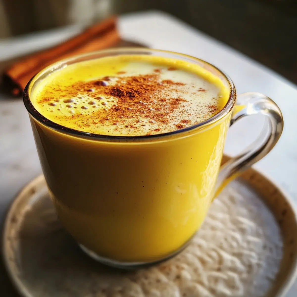 Die Goldene Kurkuma-Latte ist ideal für die Vorbereitung, um dir an hektischen Tagen Zeit zu sparen! Du kannst die Mischung aus ungesüßter Milch, Kurkuma-Pulver, gemahlenem Zimt, Ingwer-Pulver und schwarzem Pfeffer bis zu 24 Stunden im Voraus zubereiten und im Kühlschrank aufbewahren. Achte darauf, die Flüssigkeit vor dem Servieren wieder leicht zu erhitzen und gründlich umzurühren, um die Aromen aufzufrischen. Wenn du die Latte über Eis genießen möchtest, lasse sie abkühlen, bevor du sie über Eiswürfel gießt. Diese Vorbereitungen garantieren, dass deine Goldene Kurkuma-Latte ebenso köstlich bleibt, ohne dabei Zeit am Tag der Zubereitung zu verlieren!