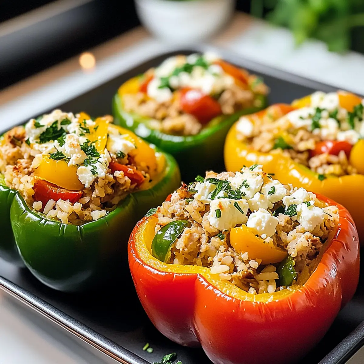 Kräuterliebe: Experimentiere mit verschiedenen frischen Kräutern wie Oregano, Basilikum oder sogar frischem Thymian, um die Aromen deiner gefüllten Paprika zu intensivieren. Jedes Kraut bringt seinen eigenen Charme mit.