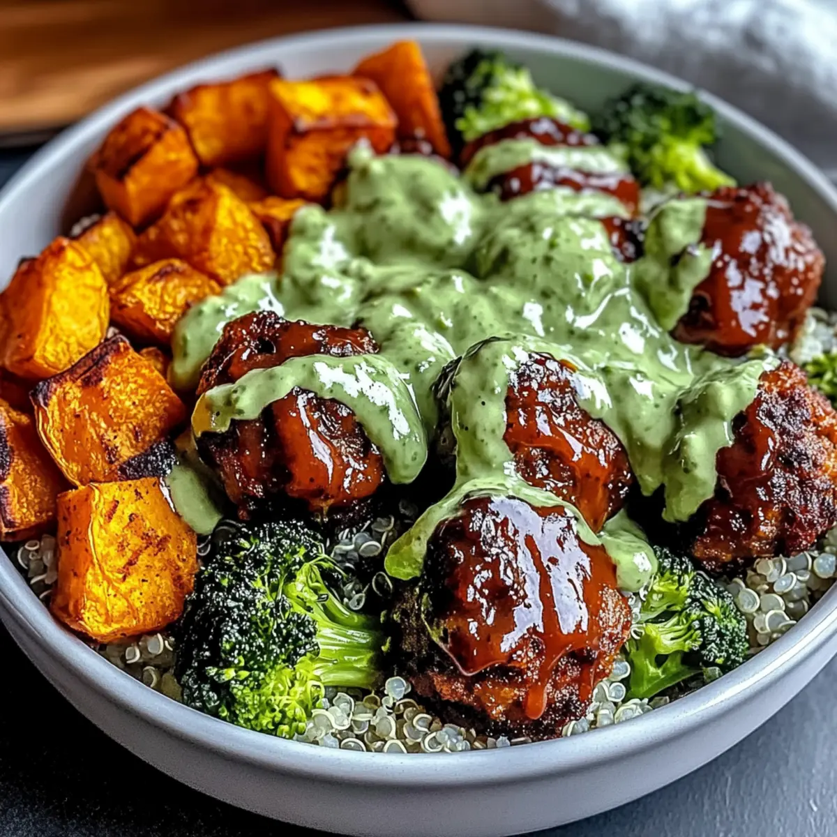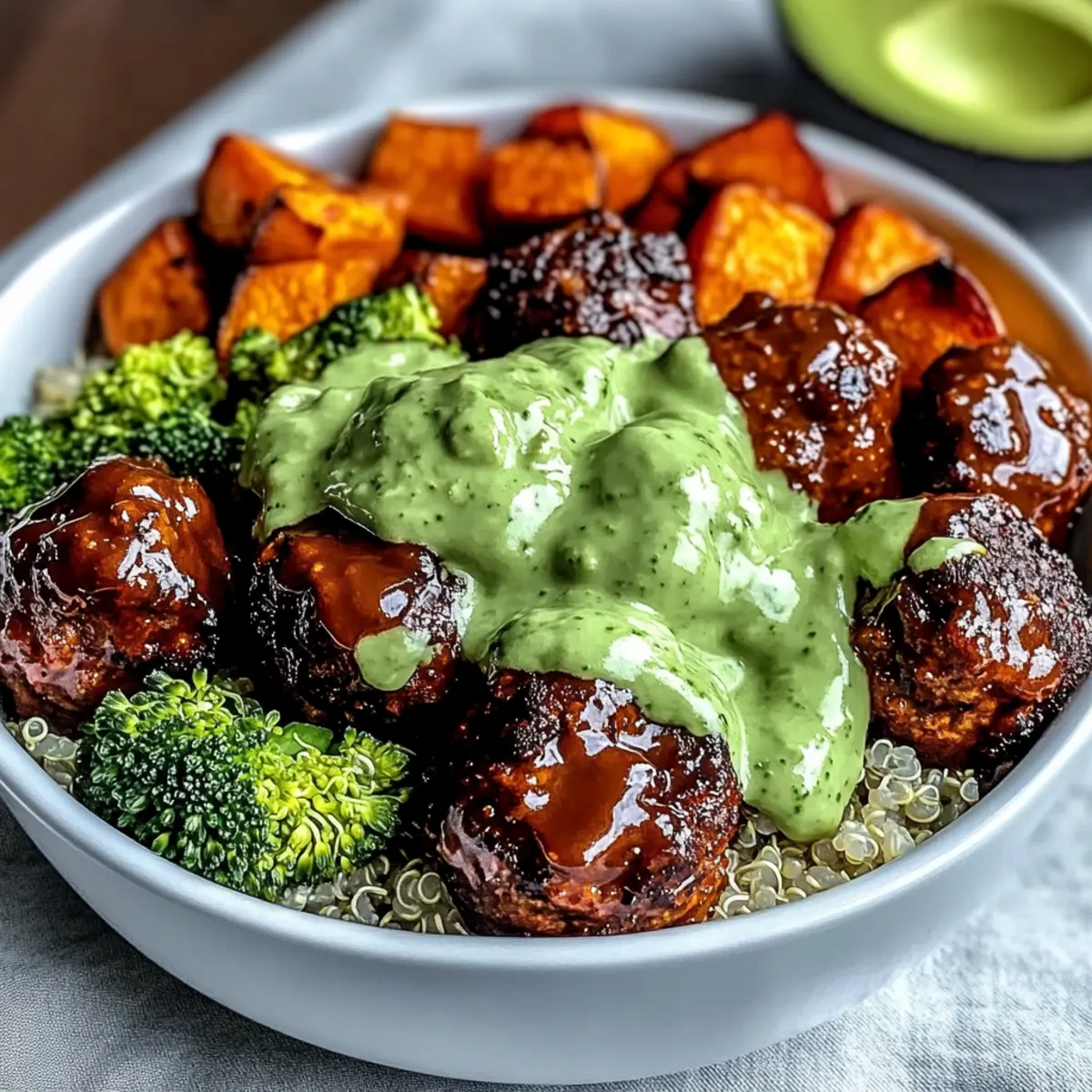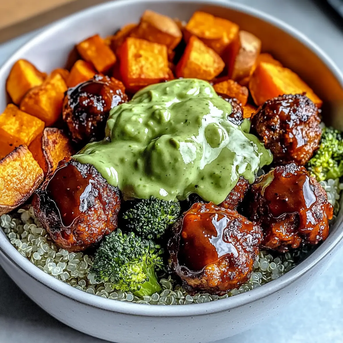 - Für die Zusammenstellung der Grillfleischbällchen-Schalen beginnen Sie mit einer Schicht von gekochter Quinoa als Basis. Fügen Sie dann die gerösteten Süßkartoffeln und den Brokkoli hinzu, gefolgt von den gebackenen Fleischbällchen. Abschließend beträufeln Sie die gesamte Schalen mit der cremigen Avocadosauce und genießen Sie die köstlichen Aromen.