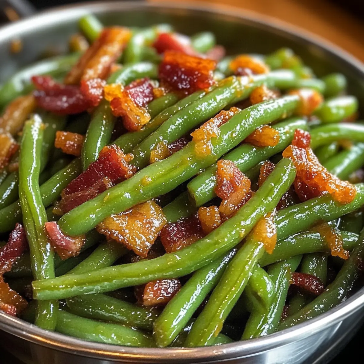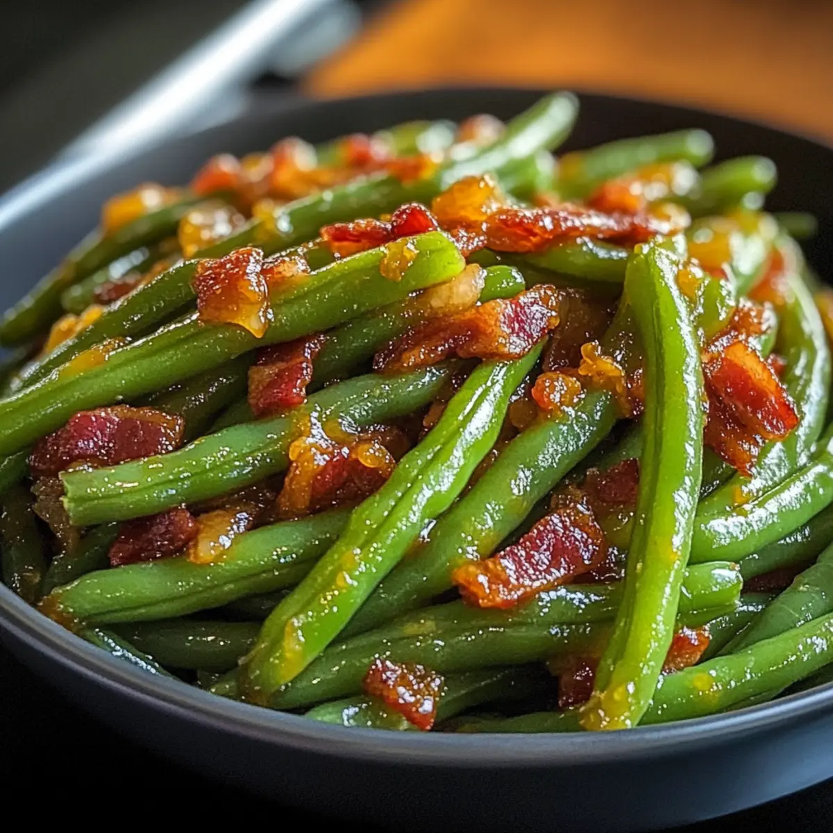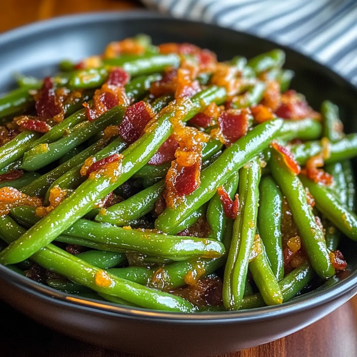 Vielseitigkeit: Für eine vegetarische Option kannst du den Bacon einfach weglassen und stattdessen geröstete Nüsse zu den grünen Bohnen geben, um den knusprigen Effekt zu erzielen.