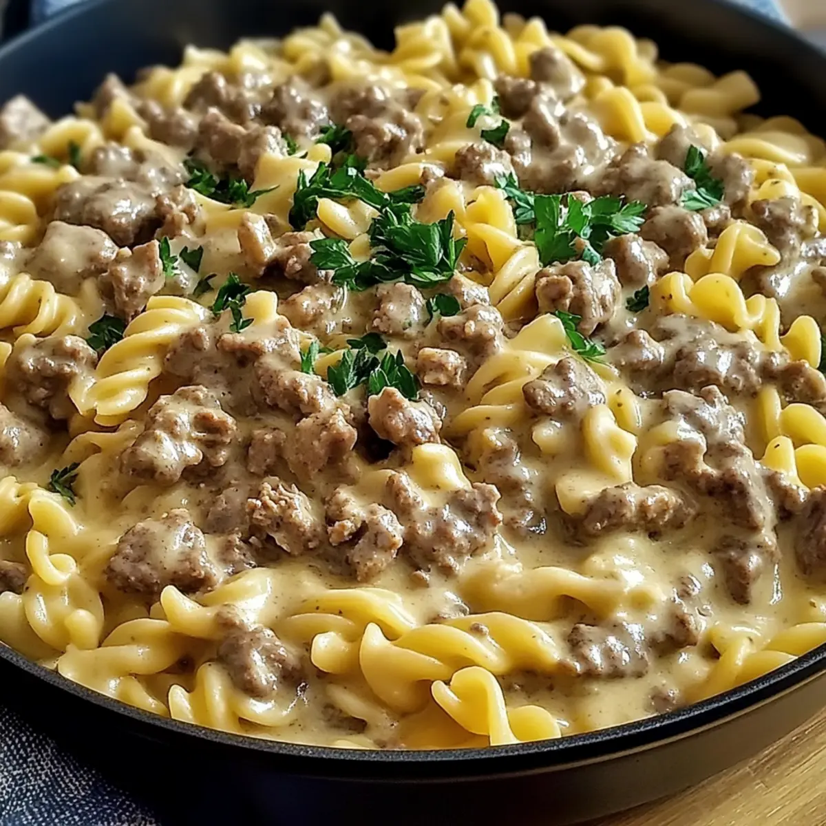 Variationen ausprobieren: Experimentiere mit Gemüse oder Gewürzen, um deinen individuellen Hamburger Helfer Rindfleisch Stroganoff zu kreieren.