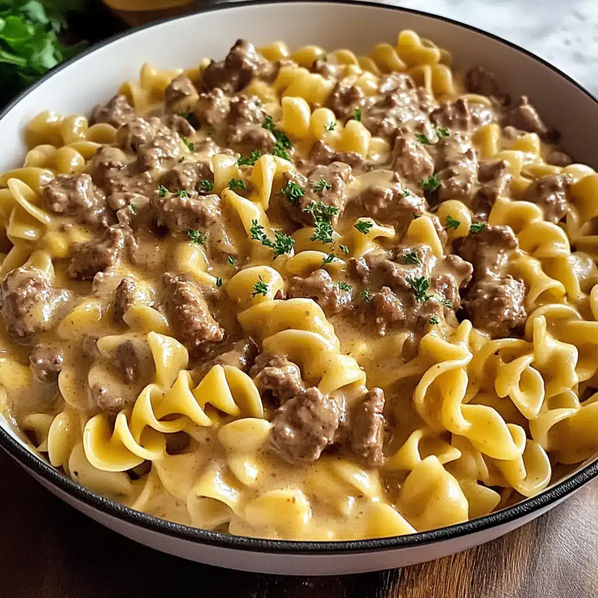 „Hast du schon einmal einen Teller voller Liebe probiert?“ Als ich das erste Mal meinen selbstgemachten Hamburger Helfer Rindfleisch Stroganoff probierte, wusste ich, dass ich etwas Besonderes geschaffen hatte. Diese köstliche Kombination aus zartem Rindfleisch, einer cremigen Sauce und perfekt gegarter Eierteigpaste bringt nicht nur Wärme in kalte Tage, sondern auch Erinnerungen an gemeinsame Familienessen. Das Beste daran? Es ist in weniger als 30 Minuten zubereitet und eignet sich perfekt für geschäftige Wochentage. Egal, ob du es klassisch magst oder mit leichten Variationen experimentieren möchtest, dieses Rezept ist äußerst anpassungsfähig und lässt sich ganz nach deinem Geschmack gestalten. Welche besonderen Zutaten wirst du hinzufügen, um es zu deinem eigenen zu machen?