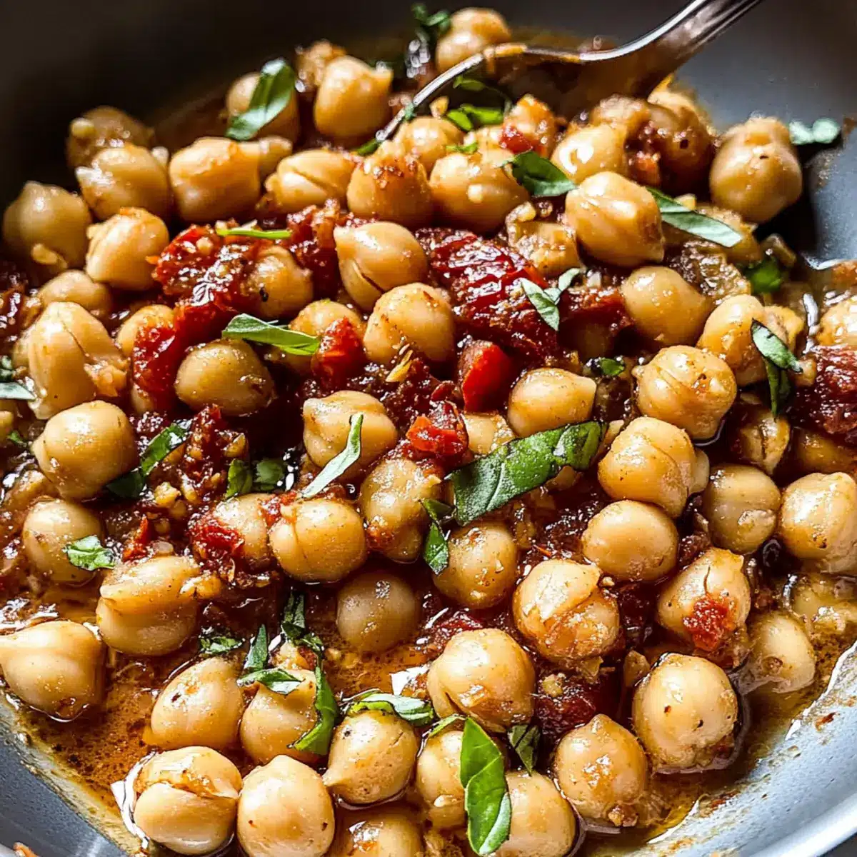 Prüfe die Konsistenz der Sauce und füge bei Bedarf mehr Wasser hinzu, um sie nach deinem Geschmack anzupassen. Kurz bevor du servierst, garniere das Gericht mit frischen Basilikumblättern. Serviere die Heirate Mich Kichererbsen entweder mit knusprigem Baguette oder über einer Basis aus Quinoa für eine glutenfreie Option.