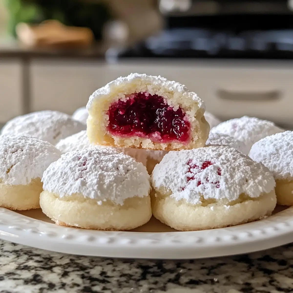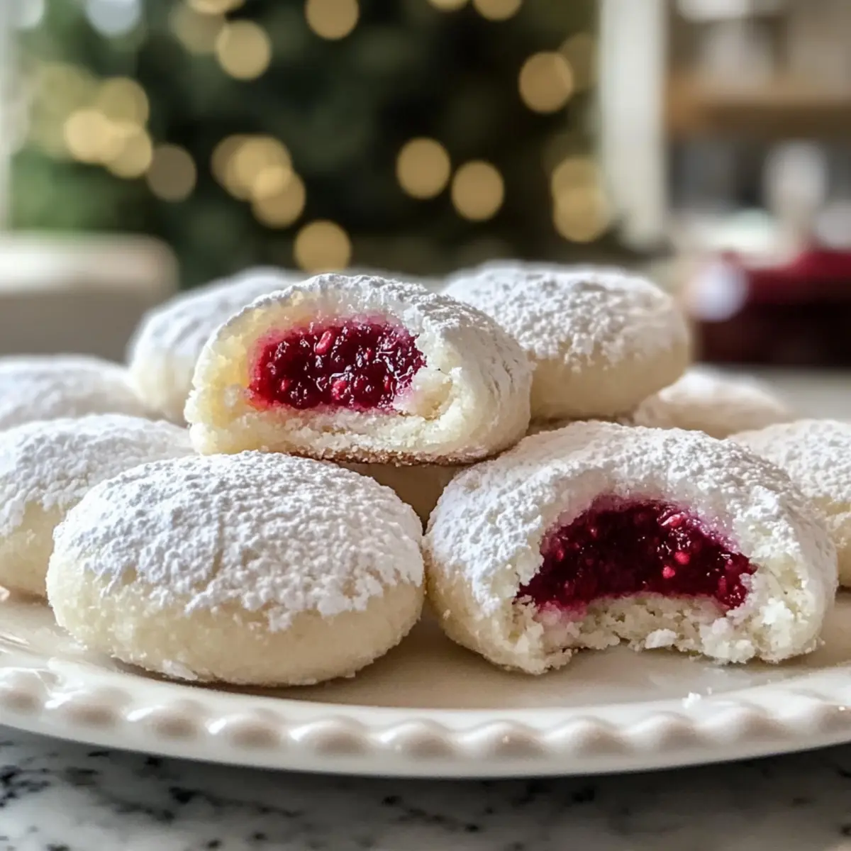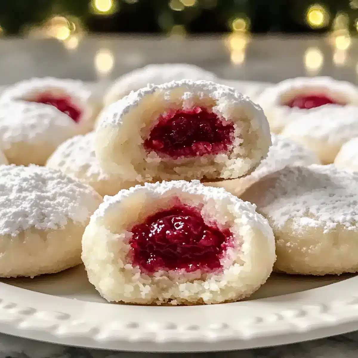 Himbeergefüllte Mandel-Schneekekse perfekt für Winterabende