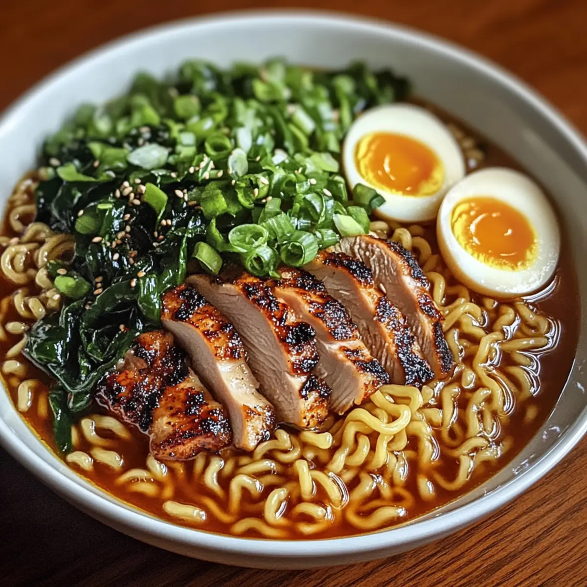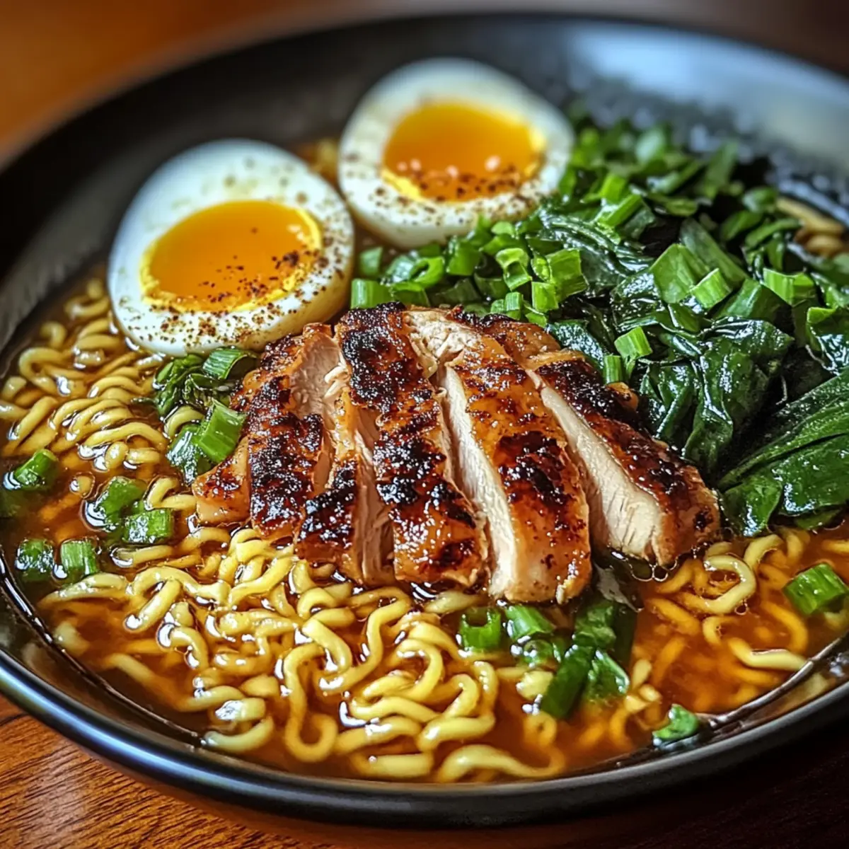 Gesunder Genuss: Diese Hühnchen Ramen Nudeln sind nicht nur schmackhaft, sondern auch nahrhaft, was sie zu einer idealen Alternative zu Fast Food macht.