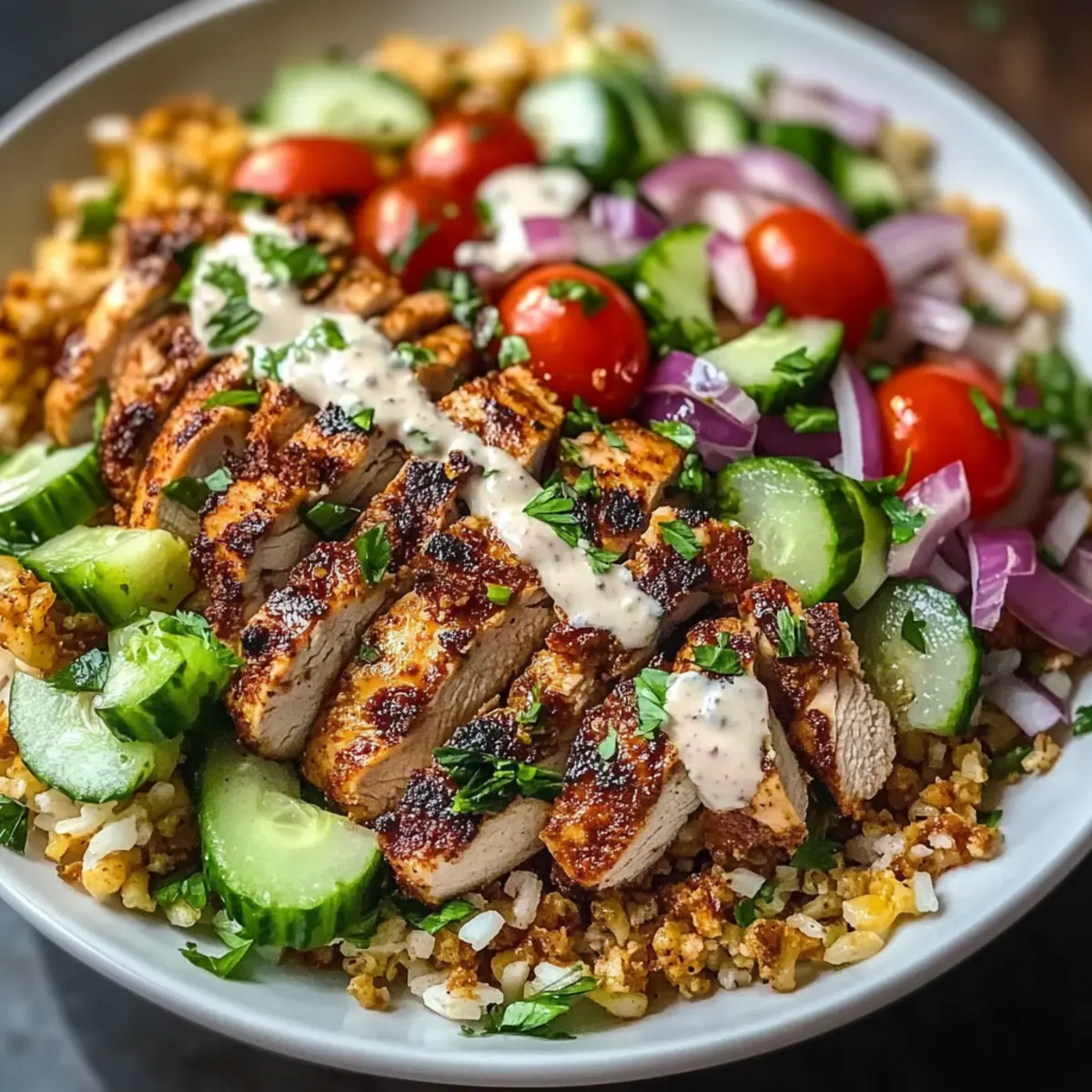 - Vegetarisch: Ersetze das Hähnchen durch Tofu oder gebratenen Halloumi für eine köstliche vegetarische Variante.