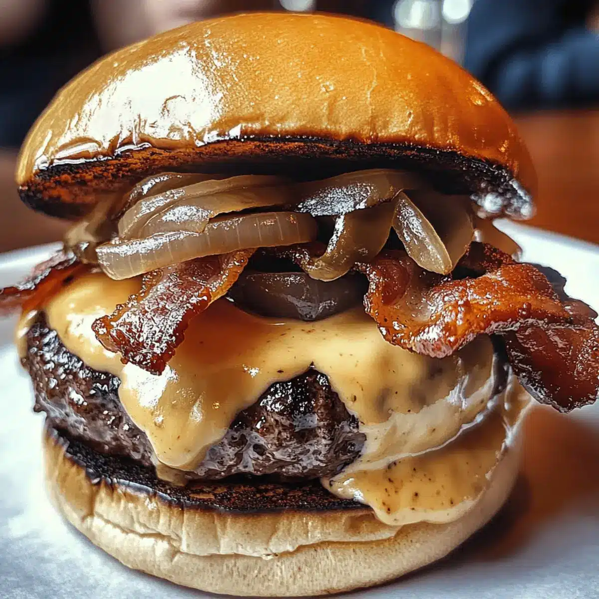 Vegetarisch: Tausche das Rindfleisch gegen einen großen Portobello-Pilz oder einen pflanzlichen Burger aus. Kombiniere die Karamellisierten Zwiebeln mit knackigem Salat für eine stillvolle Abwechslung.
