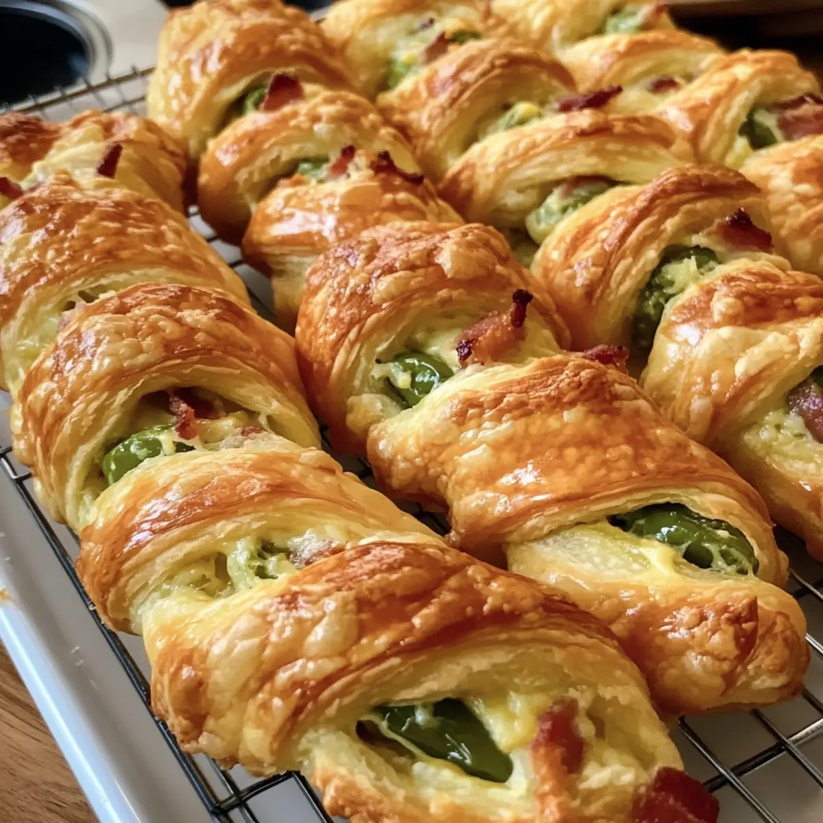 - Anpassbare Füllung: Variiere die Füllung nach Geschmack, indem du andere Käsesorten oder zusätzliches Gemüse hinzufügst, um deine eigenen Jalapeño-Popper-Blätterteig-Drehungen zu kreieren.