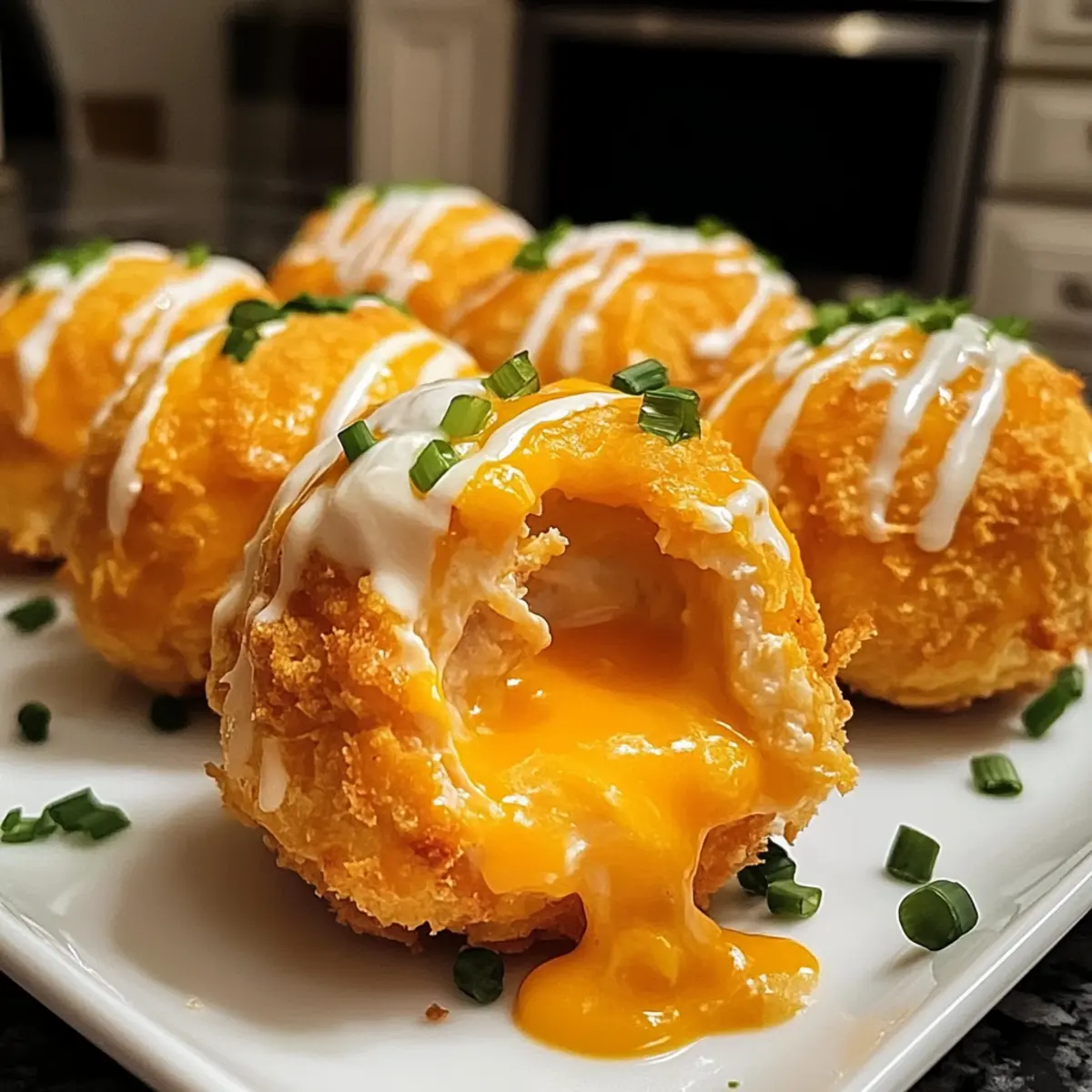 Aufwärmen: Gefrorene Käse Buffalo Ranch Hähnchen Bomben im vorgeheizten Ofen bei 190°C (375°F) für etwa 20-25 Minuten aufbacken, bis sie durchgehend heiß und knusprig sind.