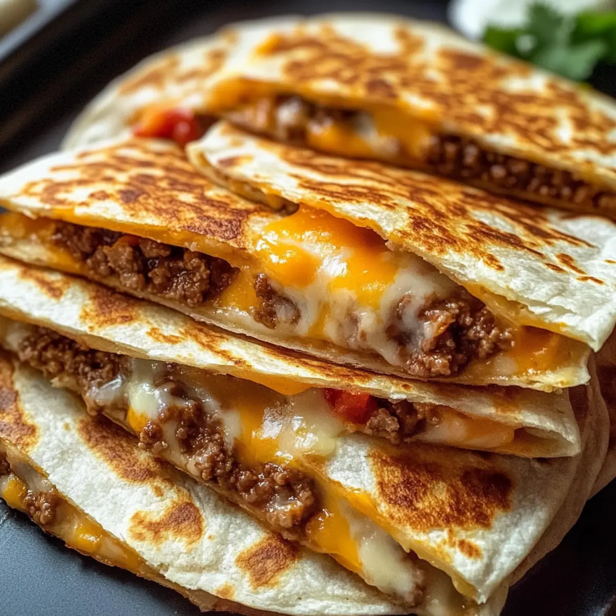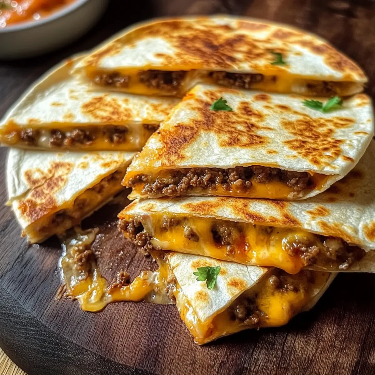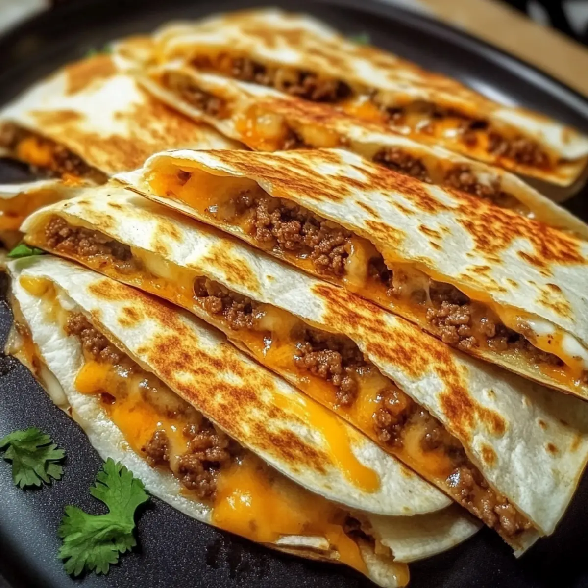 Wahrhaftiger Genuss: Der Kombination von herzhaftem Hackfleisch und geschmolzenem Käse auf knusprigen Tortillas kann niemand widerstehen. Diese Quesadillas sind perfekt für einen gemütlichen Filmabend oder einfach nur als schnelles Abendessen.