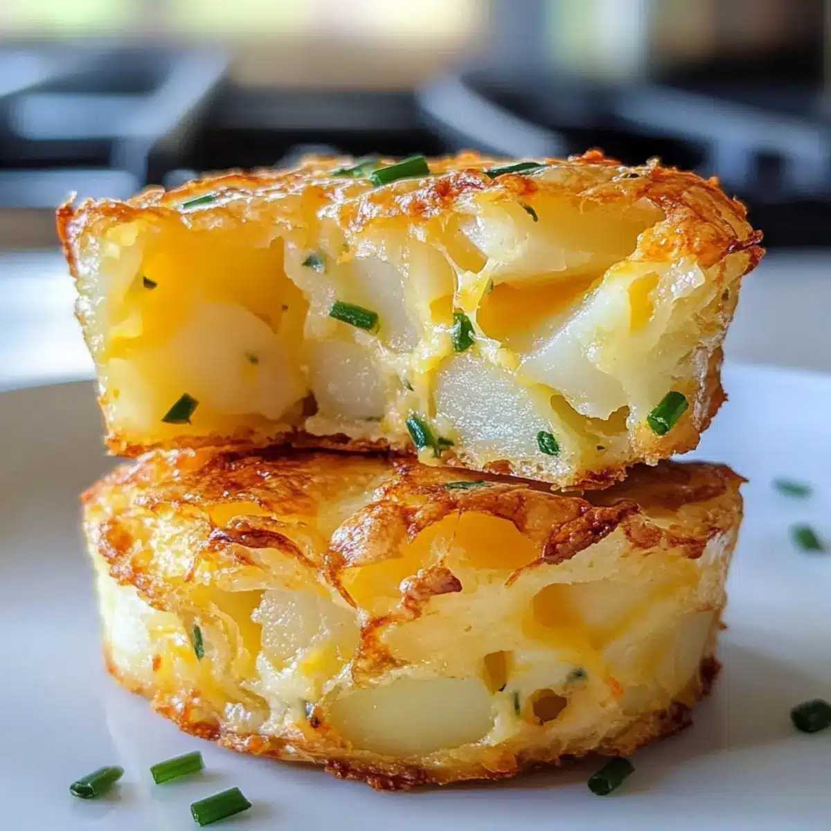 Diese Kartoffel-Cheddar-und-Schnittlauch-Bäcker sind perfekt für die Meal Prep geeignet! Du kannst die Teigmischung bis zu 24 Stunden im Voraus zubereiten, indem du die geriebenen Hashbrowns gut abtropfen lässt und sie dann mit dem Cheddar, Schnittlauch, Eiern und Milch vermischst. Bewahre die Mischung in einem luftdichten Behälter im Kühlschrank auf, um die Frische zu erhalten. Wenn du bereit bist, zu backen, forme einfach die Bäcker und stelle sie auf ein Backblech. Backe sie bei 200°C (400°F) für etwa 25 Minuten, bis sie goldbraun und knusprig sind. Diese Methode spart dir Zeit an hektischen Tagen, und du kannst sicher sein, dass die Bäcker genauso lecker bleiben wie frisch zubereitet!
