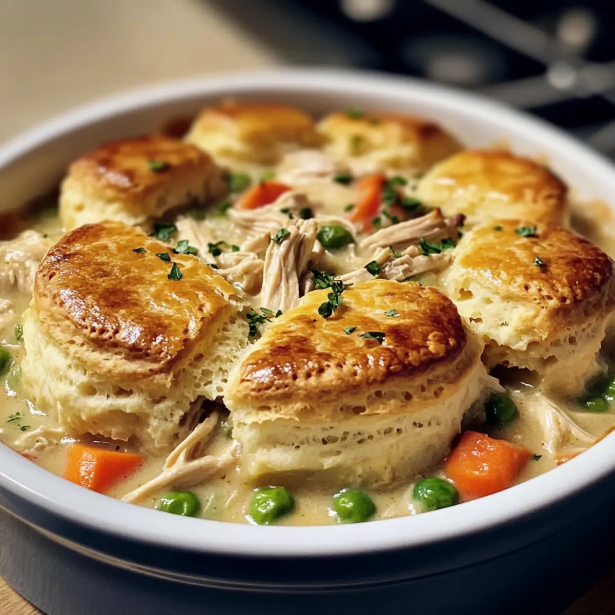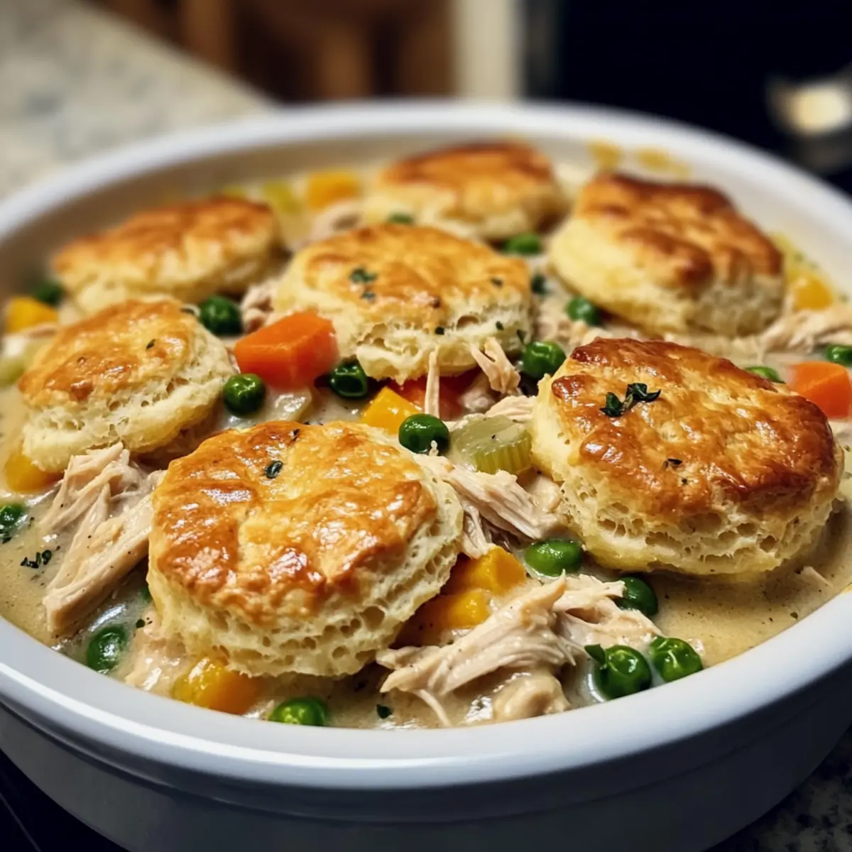 Wenn du glutenfreie Optionen benötigst, kannst du das Allzweckmehl durch eine glutenfreie Mehlmischung ersetzen. Achte darauf, dass alle anderen verwendeten Zutaten, wie Brühe und Teig, ebenfalls glutenfrei sind. Auch für vegetarische Varianten kannst du das Hähnchen durch pflanzliche Alternativen ersetzen und Gemüsebrühe anstelle von Hühnerbrühe verwenden.