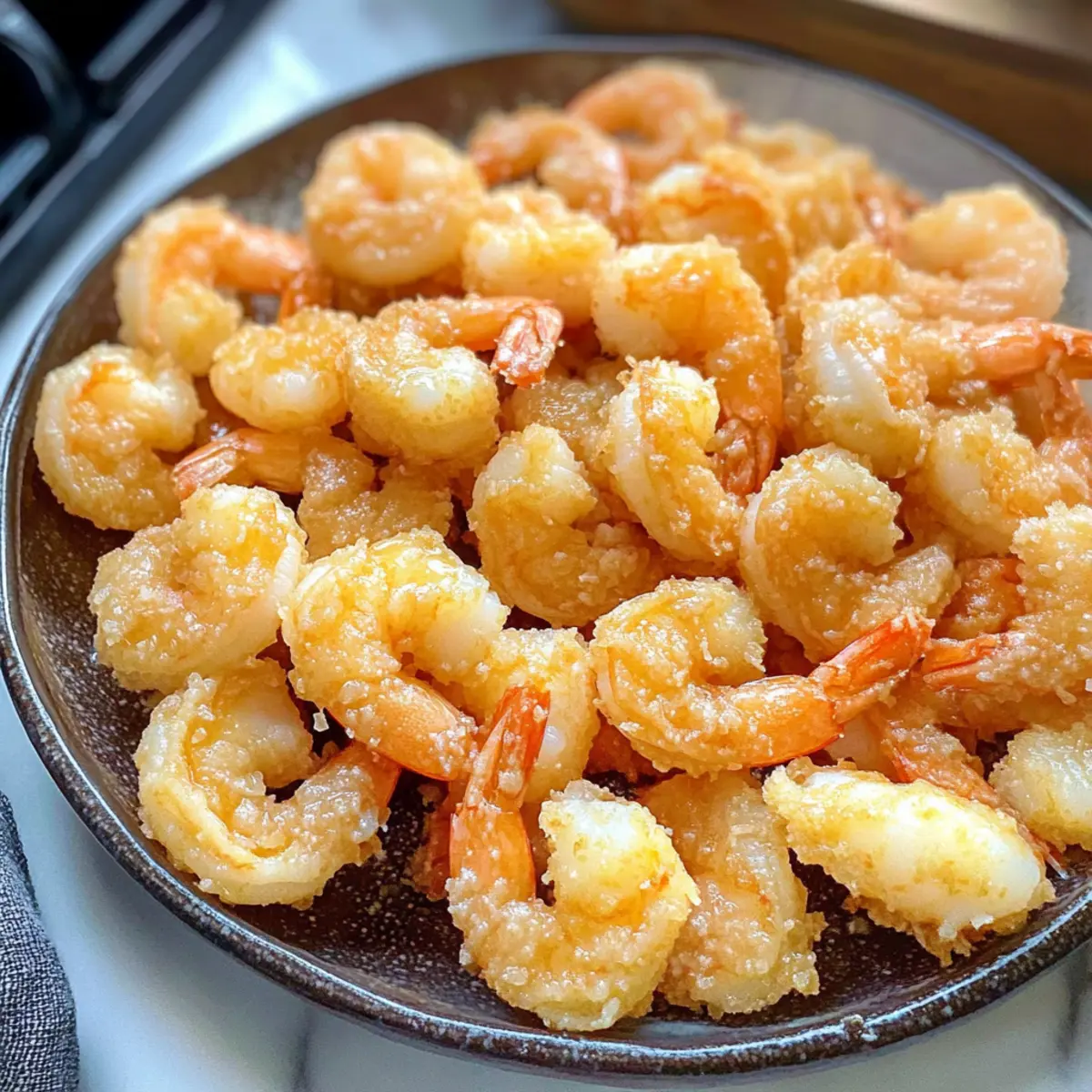 - Öl erhitzen und Garnelen frittieren: Frittieren Sie die Garnelen in kleinen Portionen bei 350°F (ca. 180°C) für 1-2 Minuten.
