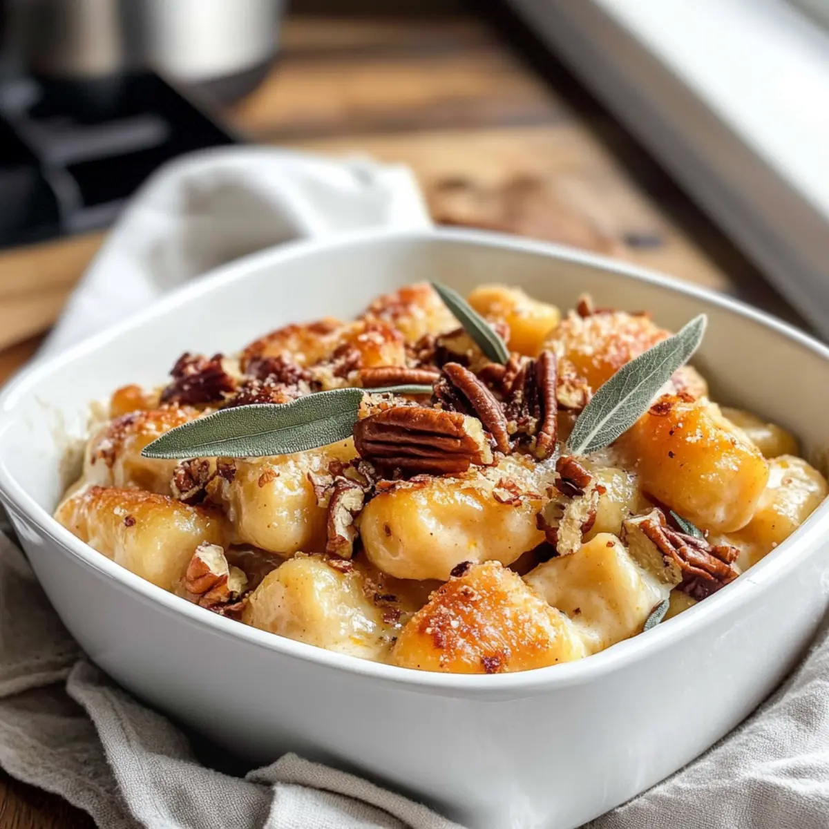 Während ich durch meinen Lieblingsmarkt schlenderte, fiel mir der frische Kürbis ins Auge – ein Zeichen, dass es Zeit für wärmende, herbstliche Gerichte ist! Ich war sofort begeistert von der Idee, einen Luftfritteuse Kürbis Gnocchi Auflauf zuzubereiten, der die perfekte Kombination aus cremiger Köstlichkeit und knusprigem Genuss bietet. Diese einfache und schnelle Zubereitung eignet sich hervorragend für geschäftige Tage, an denen wir dennoch etwas Herzerwärmendes auf den Tisch bringen wollen. Die Aromen von frisch gebratenem Salbei und knackigen Pekannüssen verleihen dem Gericht das gewisse Etwas, das es zu einem echten Familienliebling macht. Also, könnt ihr euch vorstellen, wie fantastisch dieser Gnocchi Auflauf duftet, während er in der Luftfritteuse brutzelt? Lasst uns gleich gemeinsam eintauchen!