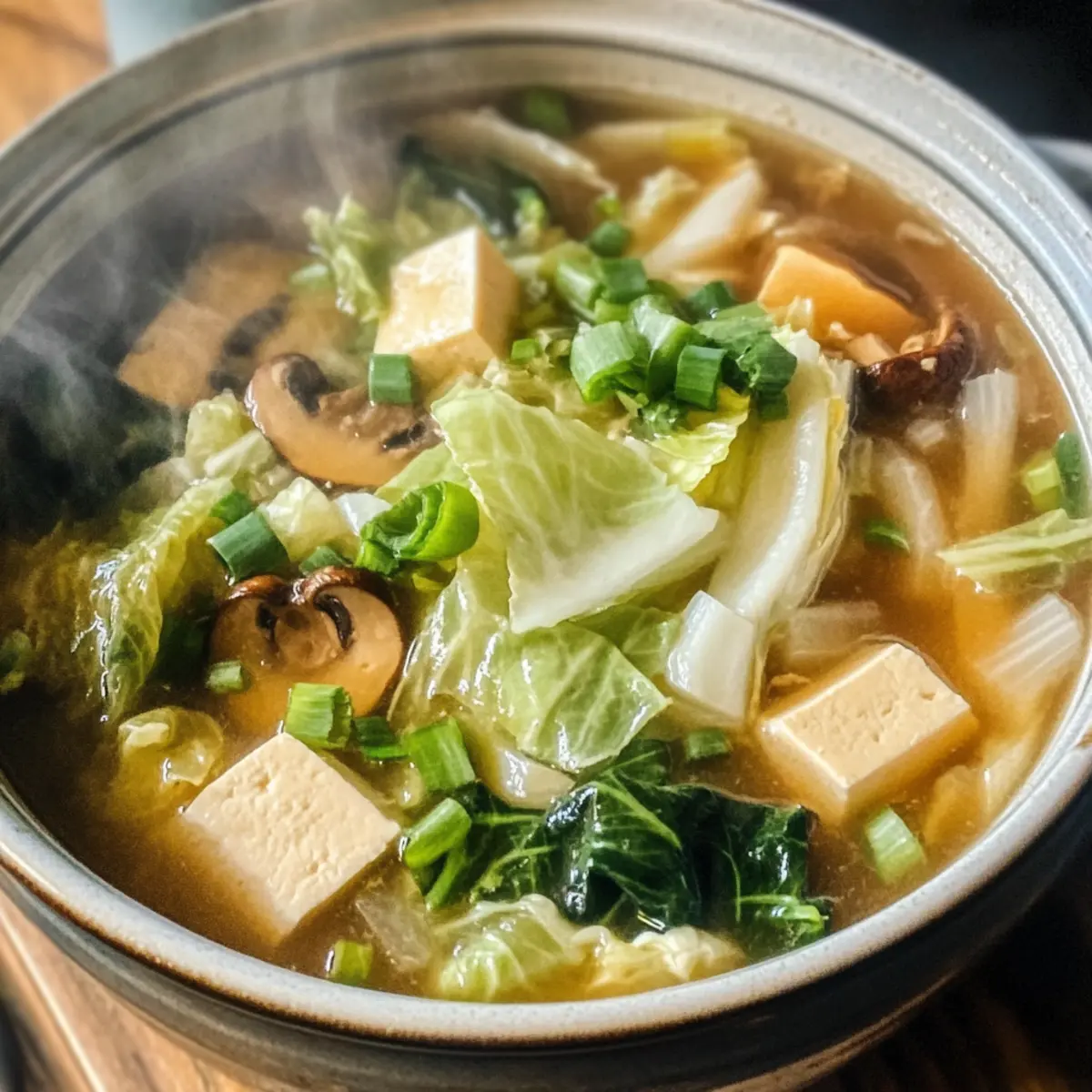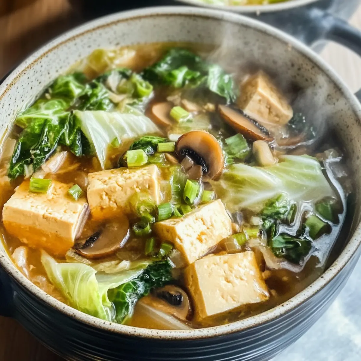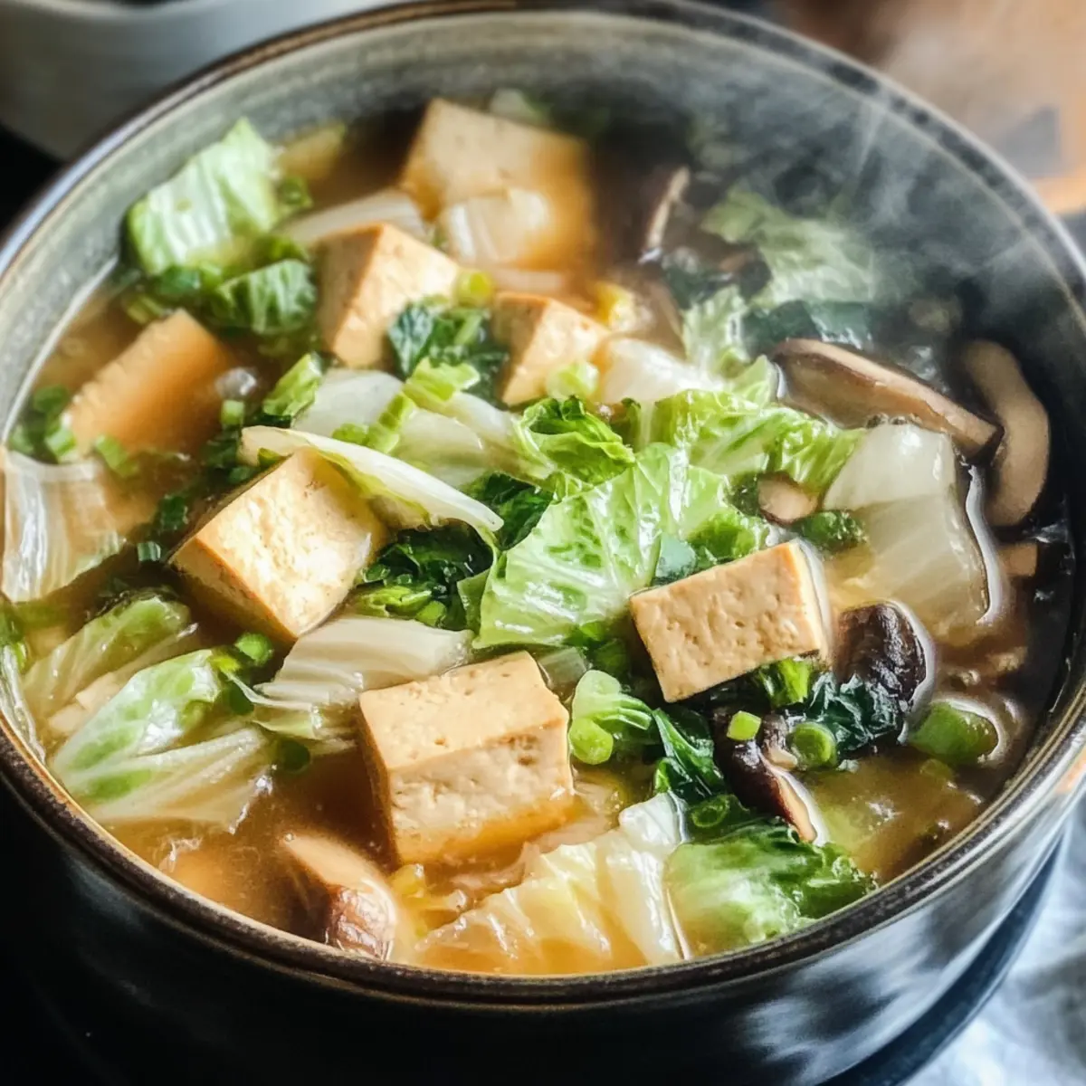 Wärmend und wohltuend: Diese Napa-Kohl Tofu Suppe bietet dir eine herzhafte Umarmung für die Seele, perfekt für kalte Tage.