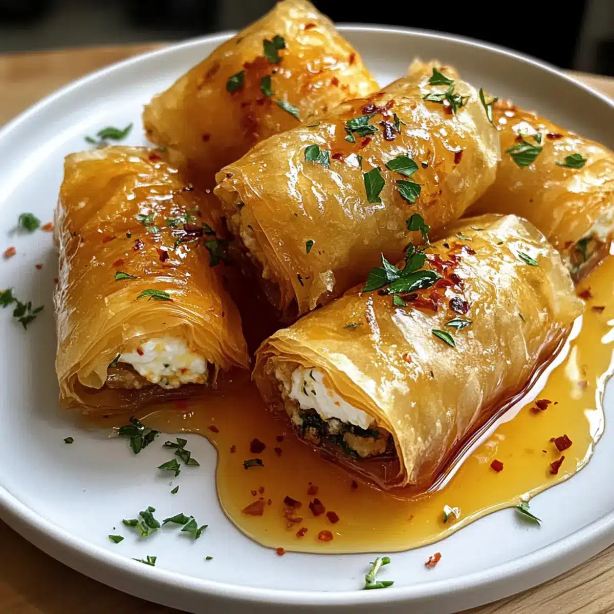 Schritt-für-Schritt-Anleitung für Ofen gebratene Feta-Rollen mit Chili-Honig
