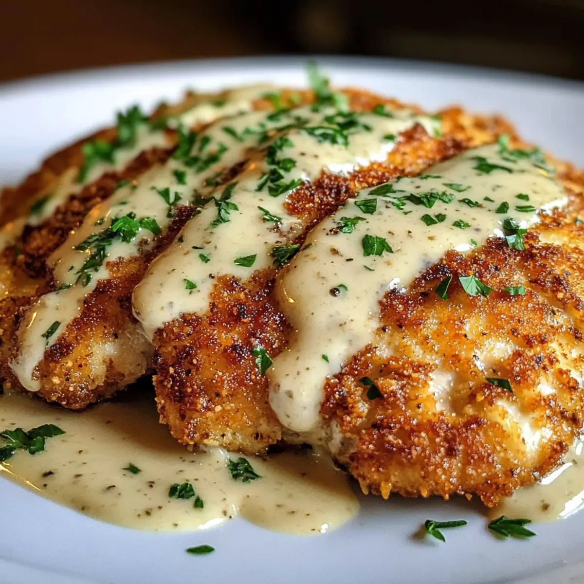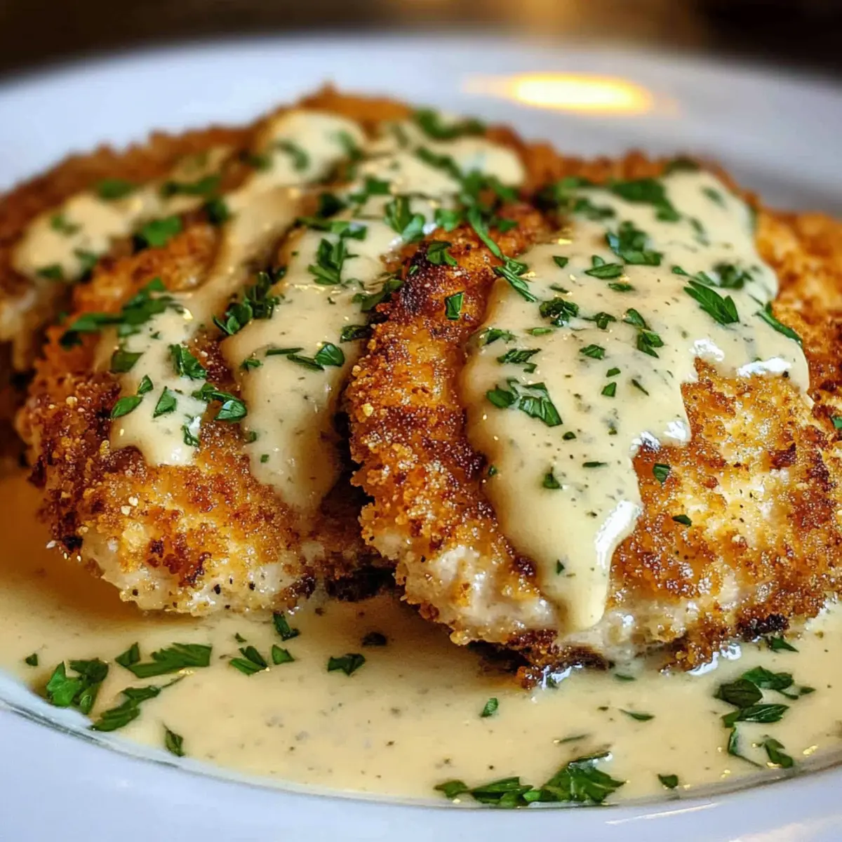Das Parmesan-Krusten-Hühnchen mit cremiger Knoblauchsauce eignet sich wunderbar für die Vorbereitung im Voraus, was dir wertvolle Zeit an einem hektischen Wochentag spart. Du kannst die dünnen Hähnchenbrustfilets bis zu 24 Stunden im Voraus würzen und die Panade anbringen; das garantiert einen intensiven Geschmack und eine knusprige Kruste. Für die cremige Knoblauchsauce kannst du alle Zutaten bis zu 3 Tage im Voraus vorbereiten und im Kühlschrank aufbewahren, um die Qualität zu erhalten. Wenn du bereit bist zu servieren, erhitze einfach die Sauce, brate das Hühnchen frisch, kombiniere beides und genieße den Restaurant-Style direkt bei dir zu Hause! Indem du diese Schritte im Voraus erledigst, bleibt das Gericht ebenso köstlich und frisch.