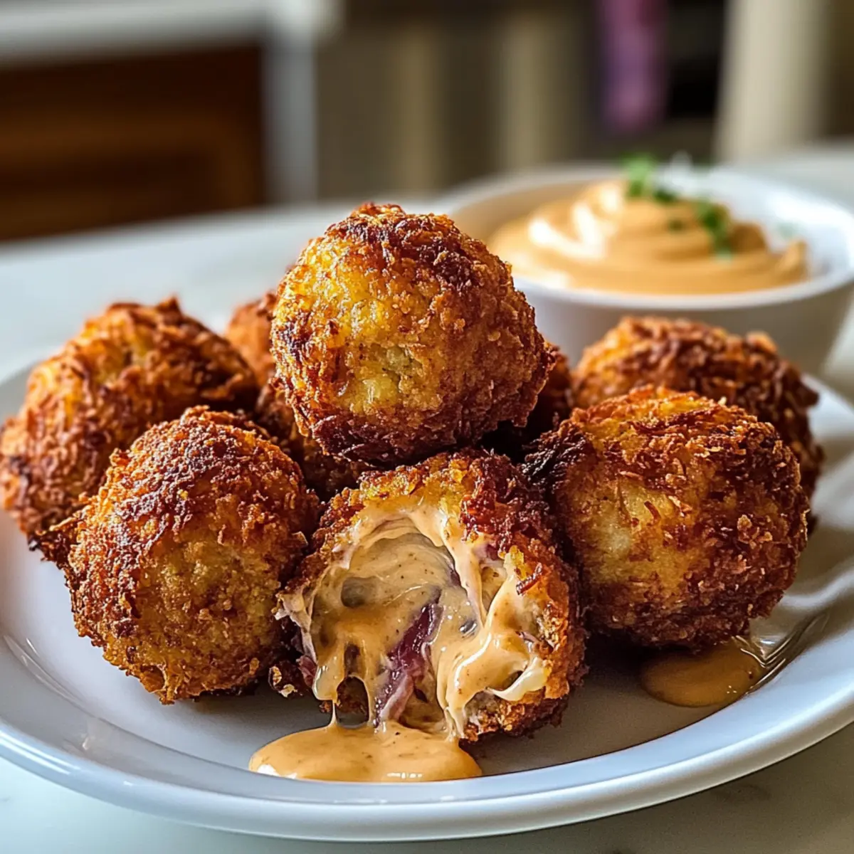 Reuben Bällchen mit würzigem Dip ganz einfach machen