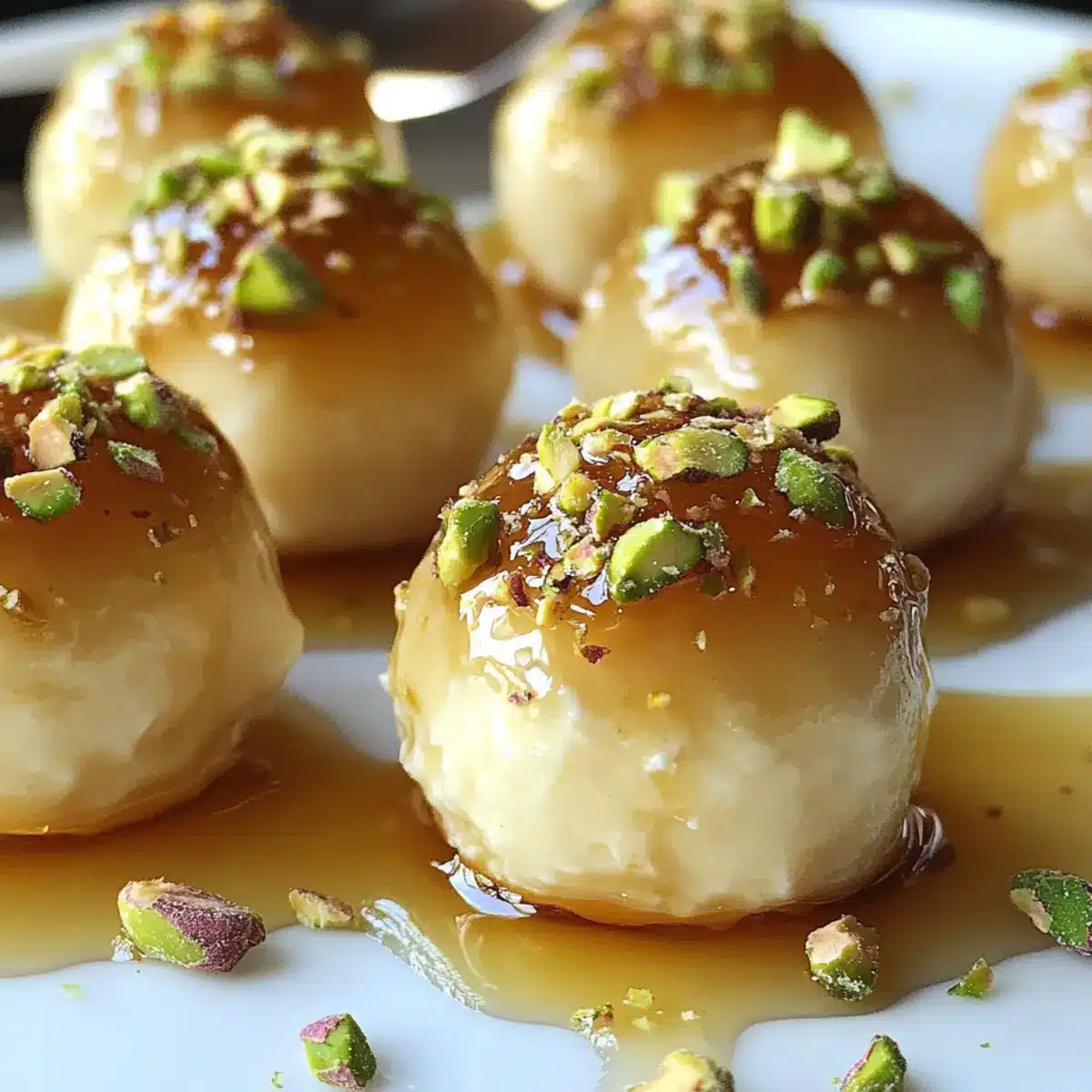 Servieren: Vor dem Servieren können Sie die Bissen mit zusätzlichem Honig und gehackten Pistazien garnieren, um nochmals für einen frischen Akzent zu sorgen.