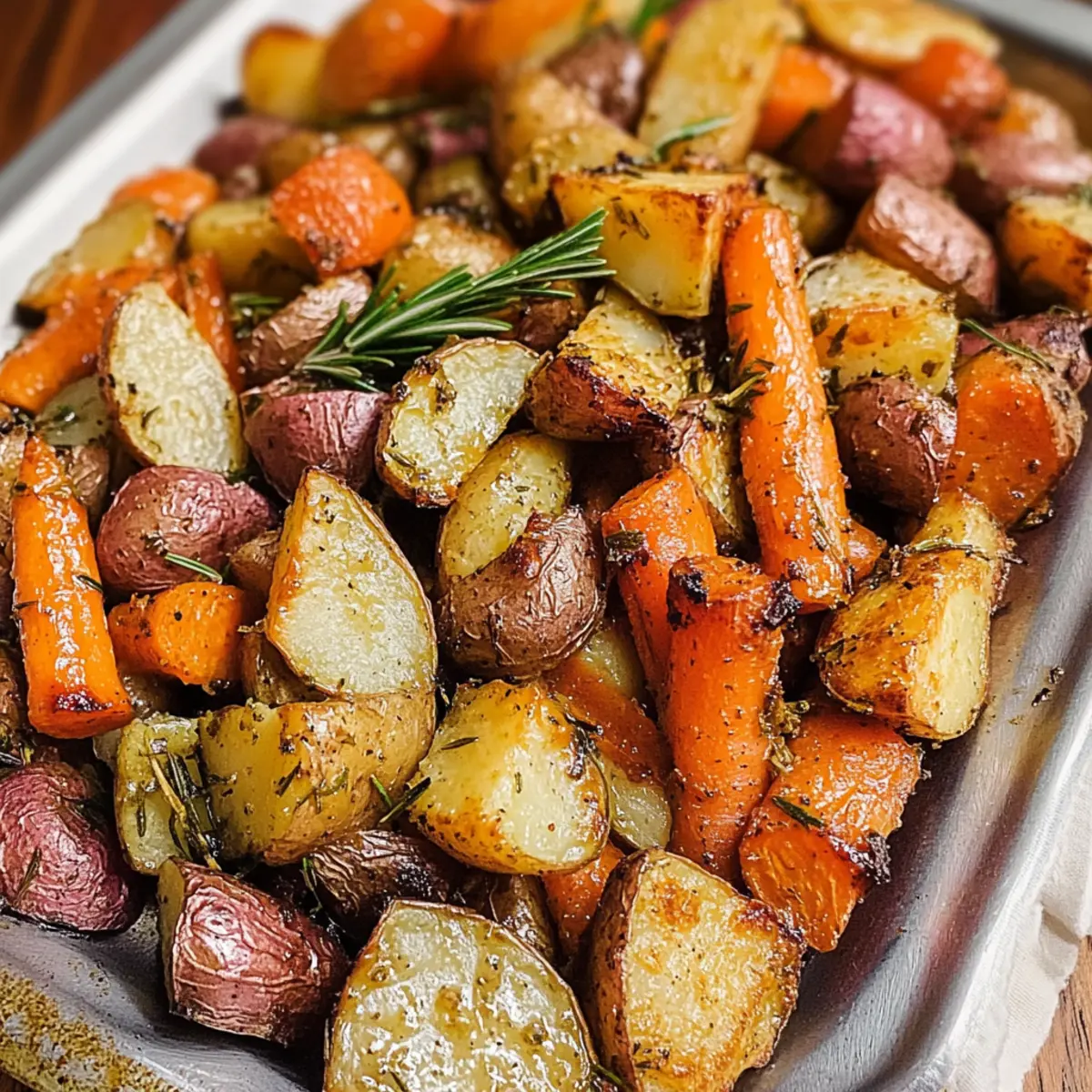 Tipp für die besten Rosmarin gerösteten Karotten und roten Kartoffeln