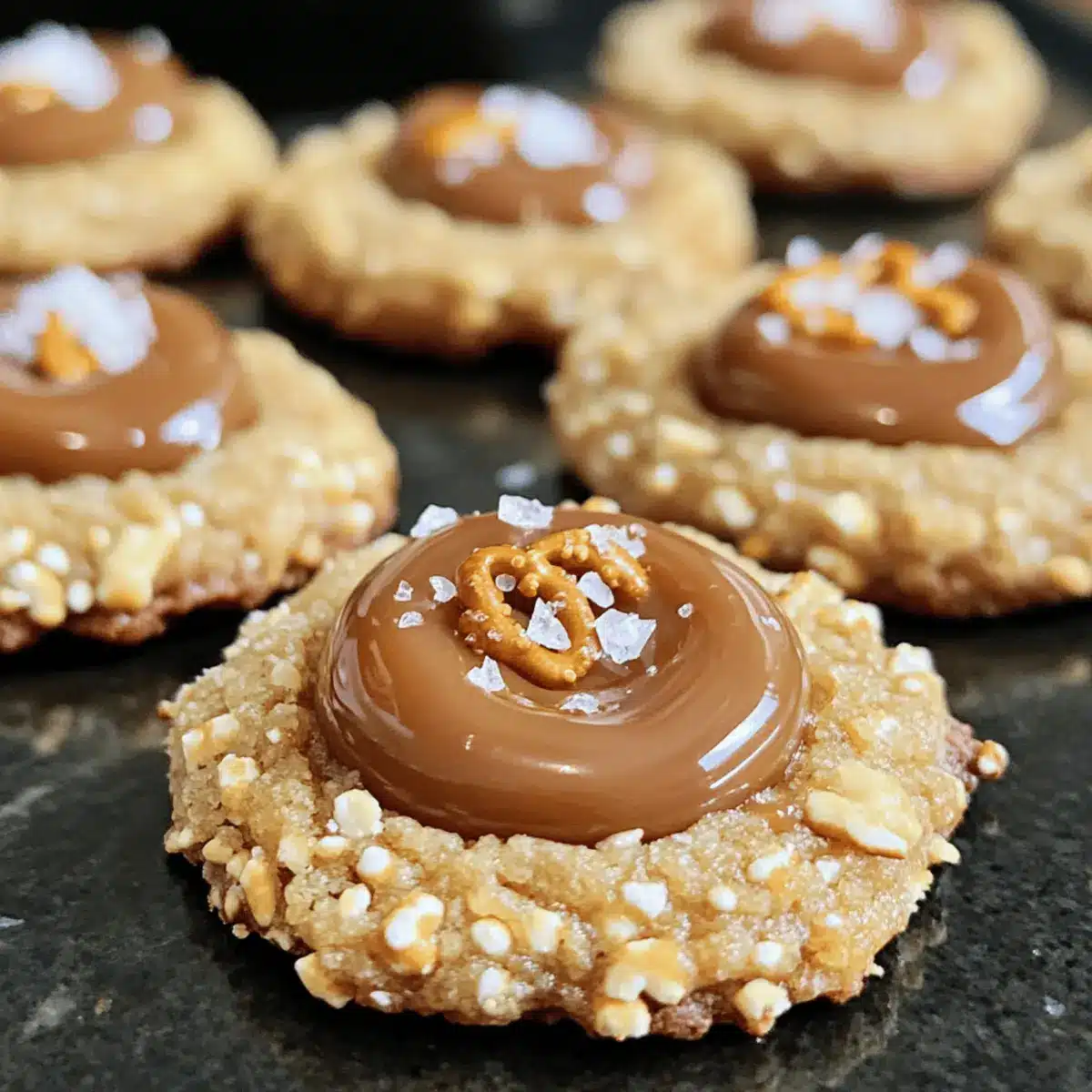 Salzkaramell-Brezel-Daumenabdruckkekse für Naschkatzen