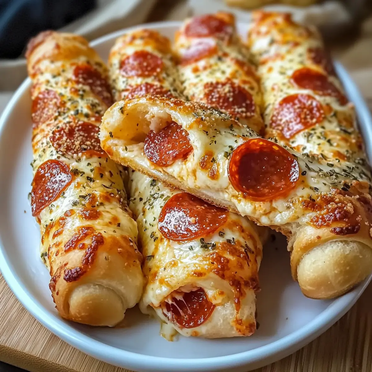 - Naht sicher verschließen: Achte darauf, die Naht gut zu drücken, damit die Füllung beim Backen nicht ausläuft; sonst könnten deine Pepperoni Pizza Roll Brotsticks unordentlich werden.
