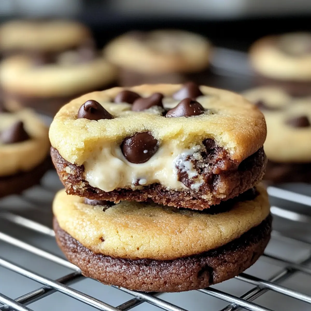 Lasse die Kekse kurz abkühlen, bevor du sie auf einer Kühlfläche weiter abkühlen lässt. So behalten sie ihre Form und die leckere Füllung bleibt wunderbar cremig. Jetzt kannst du dich auf das Genießen deiner frisch gebackenen Schokoladenkeks-Käsekuchen freuen!
