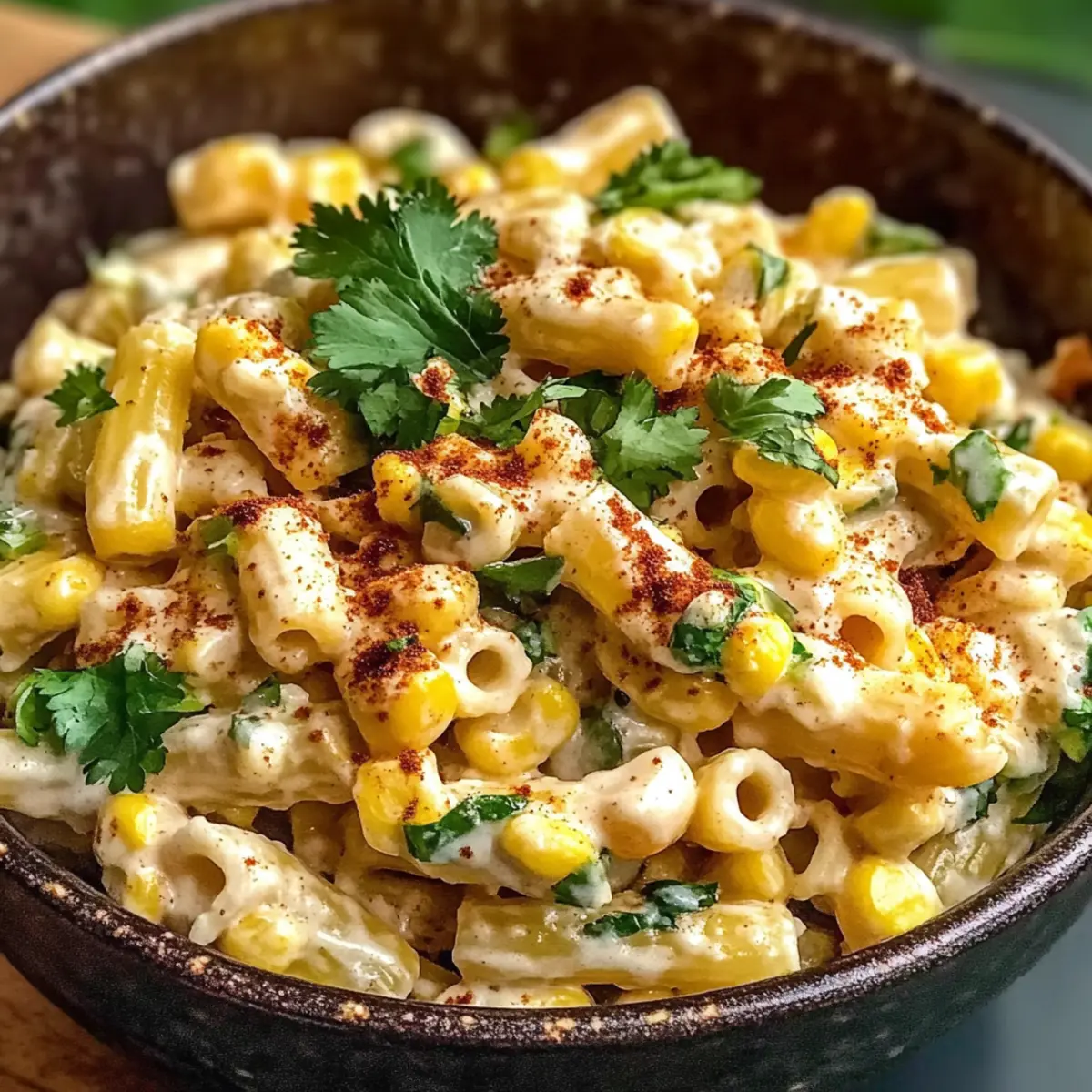 Genießen Sie dieses Zusammenspiel von Geschmäckern und Texturen, um jeden Bissen des Straßenmais-Pasta-Salats unvergesslich zu machen!