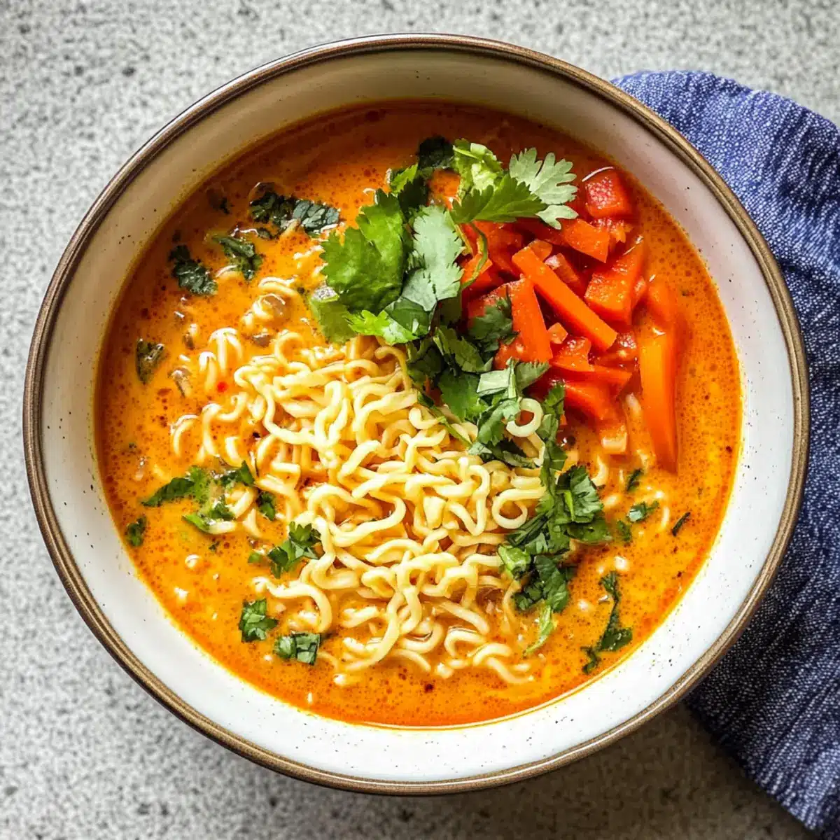 Achte bei den Zutaten auf Frische und Qualität. Die gelbe Zwiebel sollte fest und ohne dunkle Stellen sein, während die rote Paprika leuchtend und knackig aussehen sollte. Karotten sollten glatt und knusprig sein. Verwende frische rote Currypaste, die du im Kühlschrank gut lagern kannst. Wenn du auf glutenfreie Alternativen achtest, stelle sicher, dass alle Zutaten, einschließlich der Ramen-Nudeln, als glutenfrei gekennzeichnet sind.