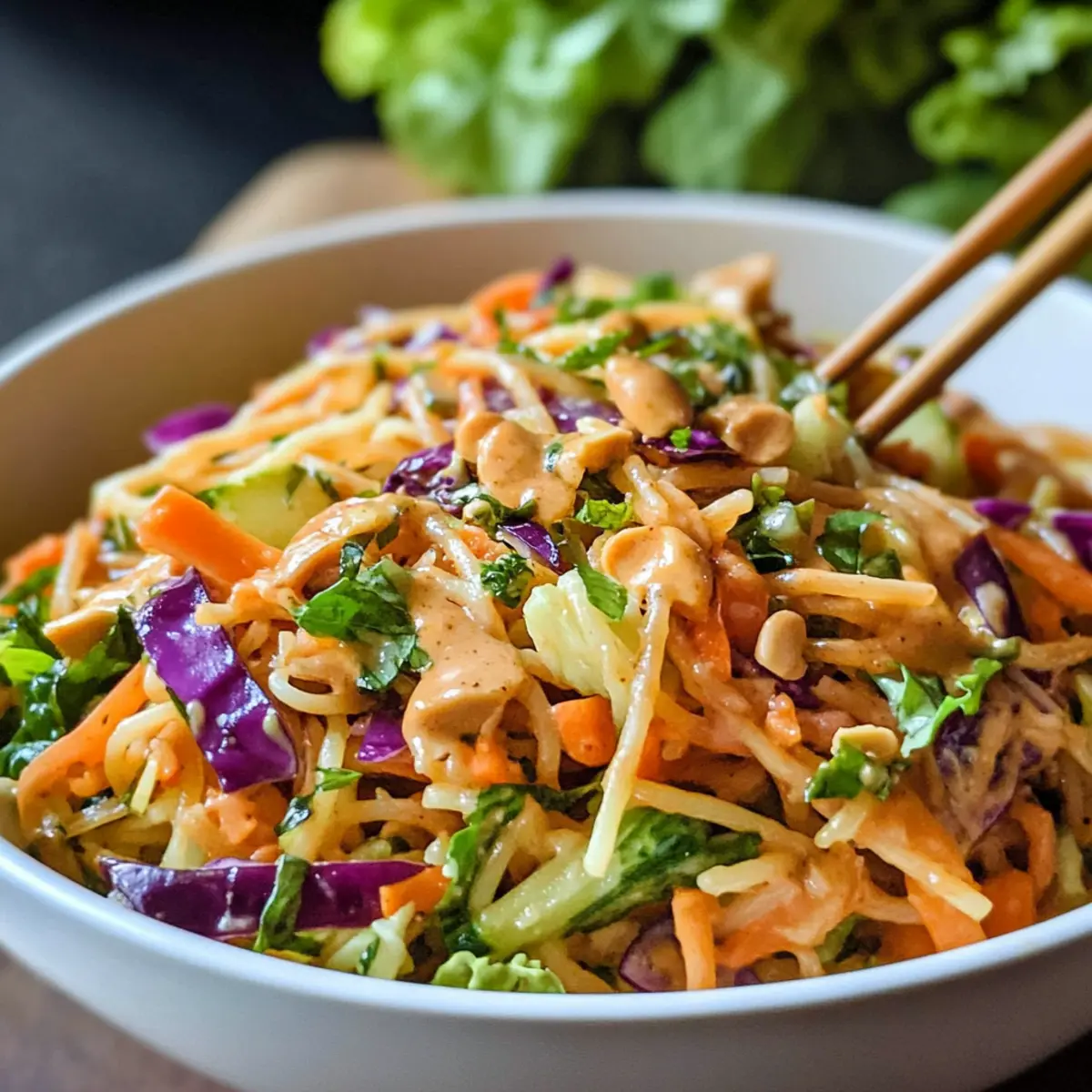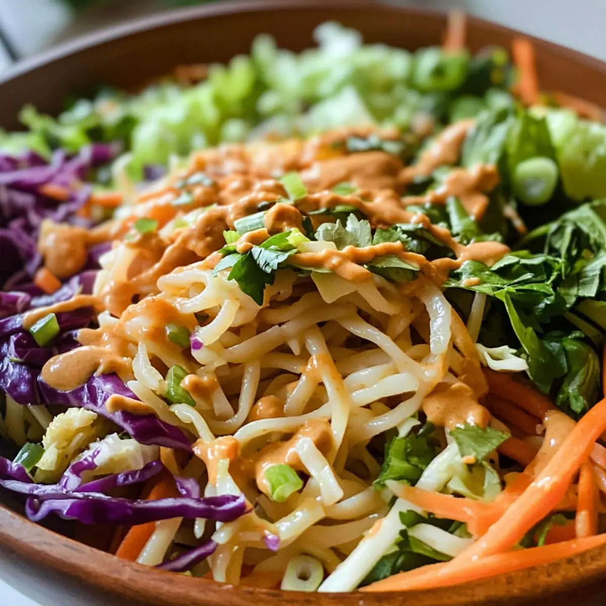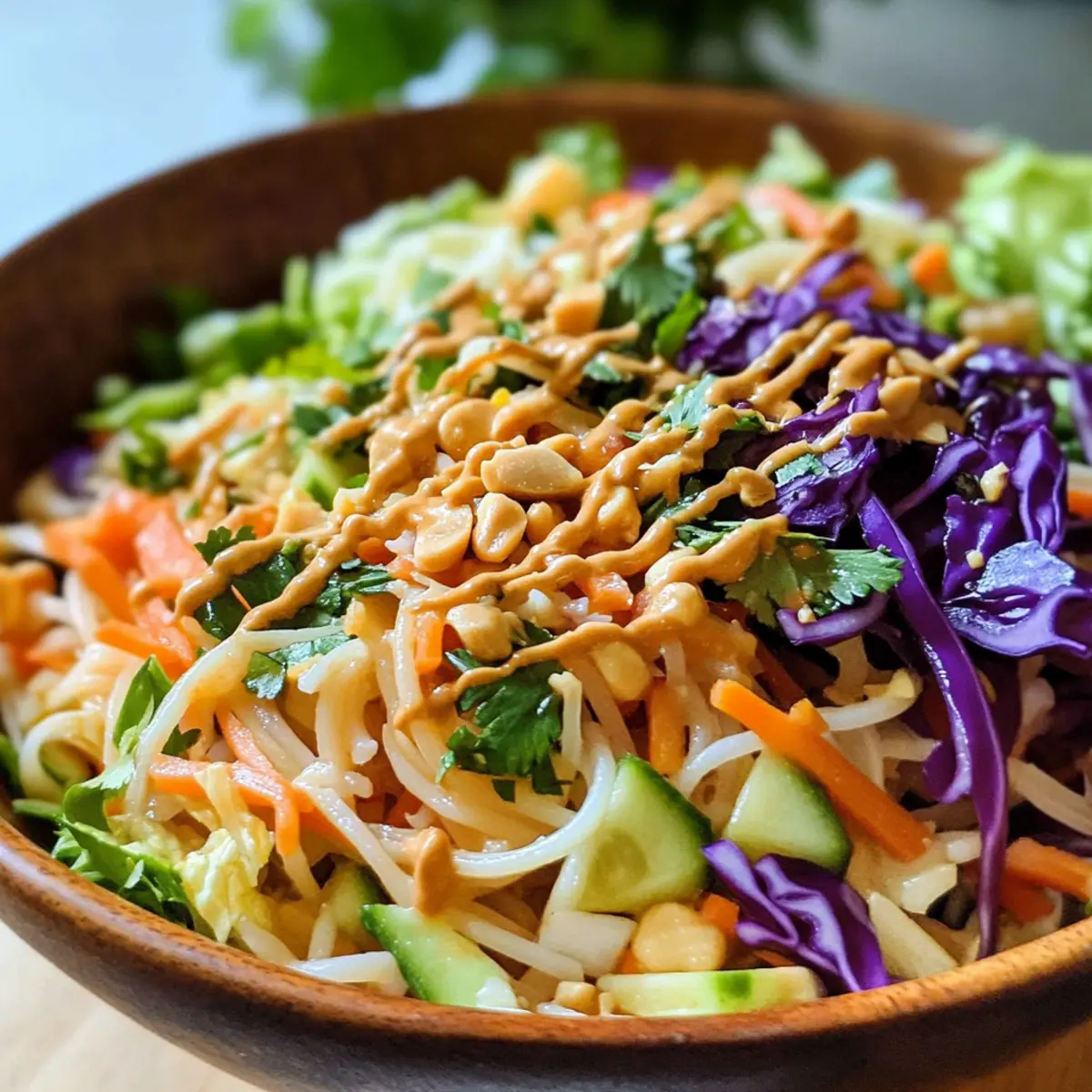 Thai Frühlingsrollen Pasta Salat mit Erdnussdressing